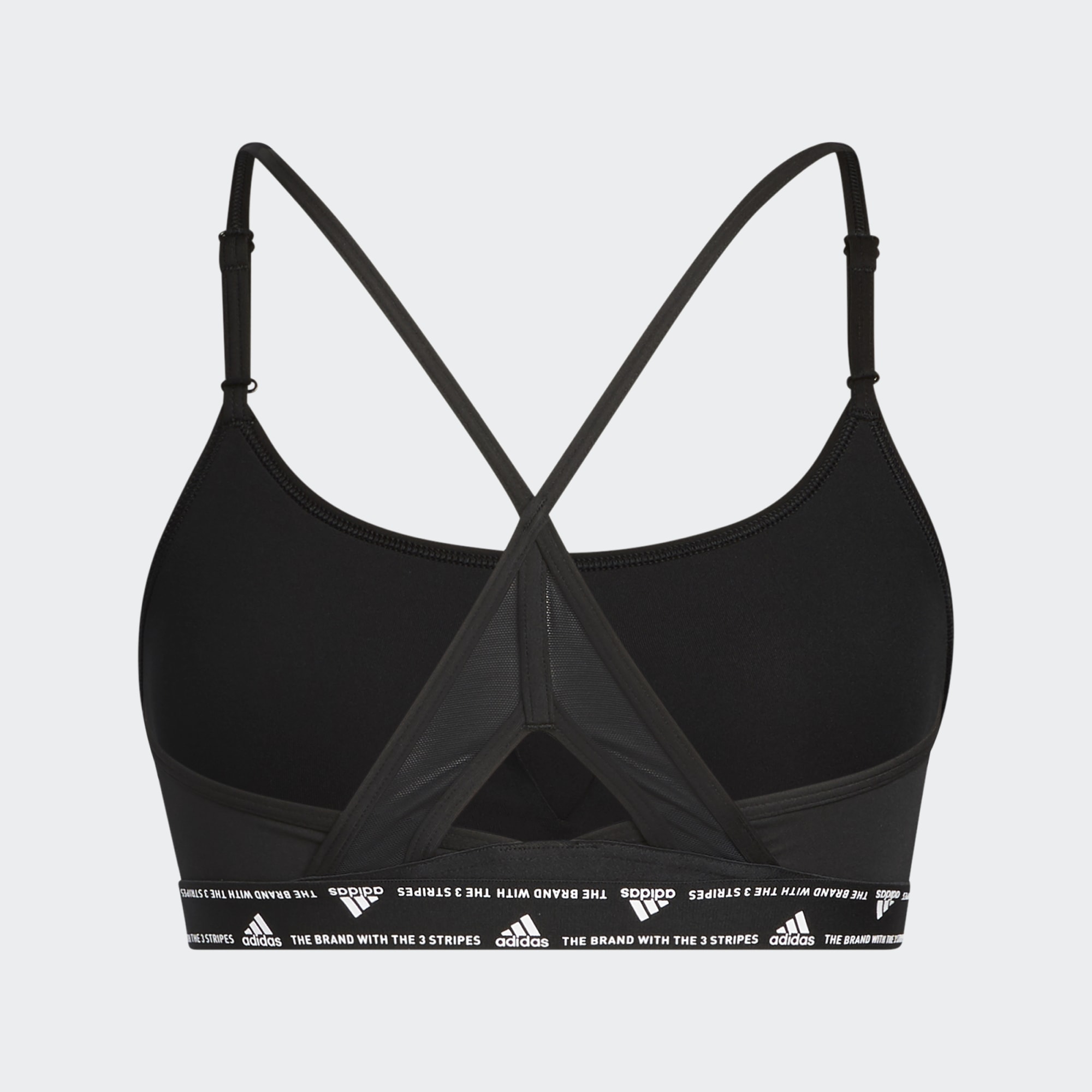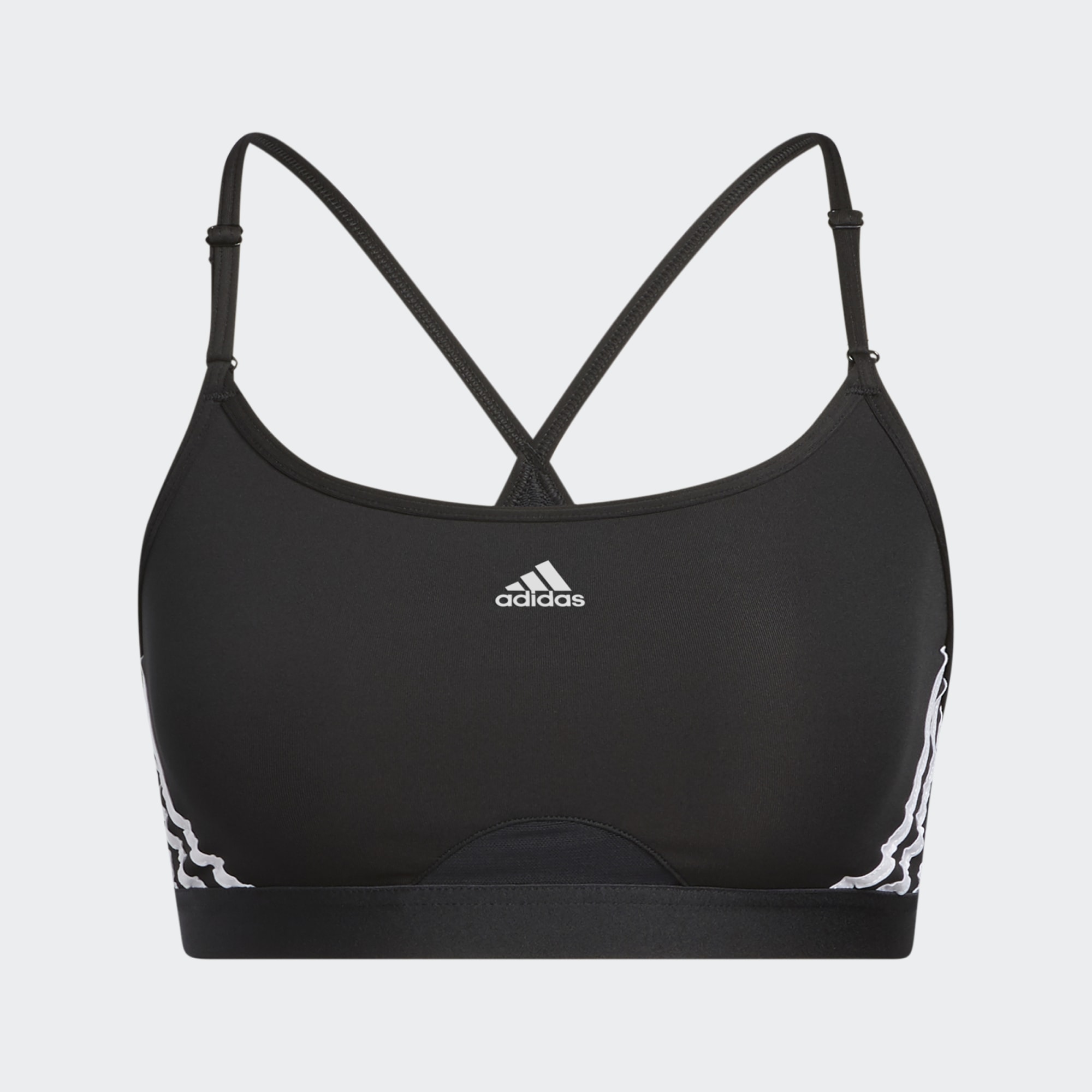 Turn up the intensity. This adidas light-support bra keeps you feeling good with breathable mesh details and moisture-absorbing AEROREADY. The thin straps are adjustable from the front, a small detail you'll appreciate during crunches or bench work.