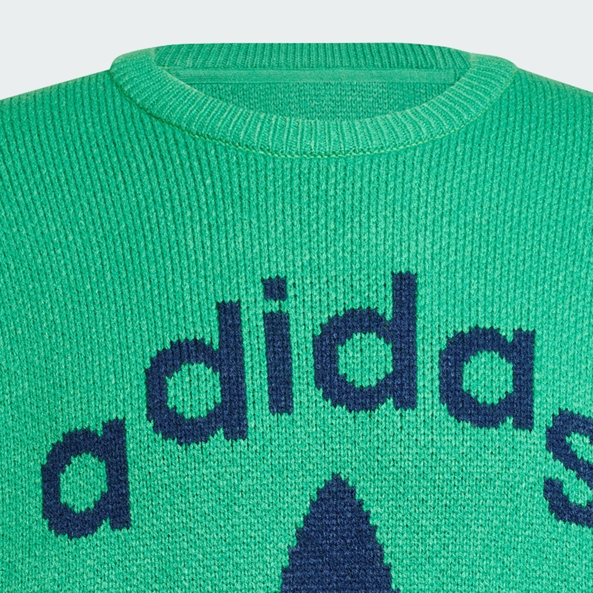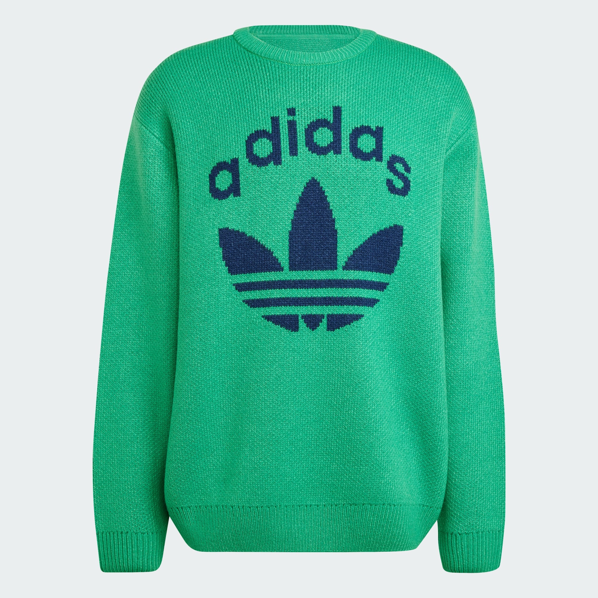 A knit crewneck sweat featuring a jacquard Trefoil and knit 3-Stripes.