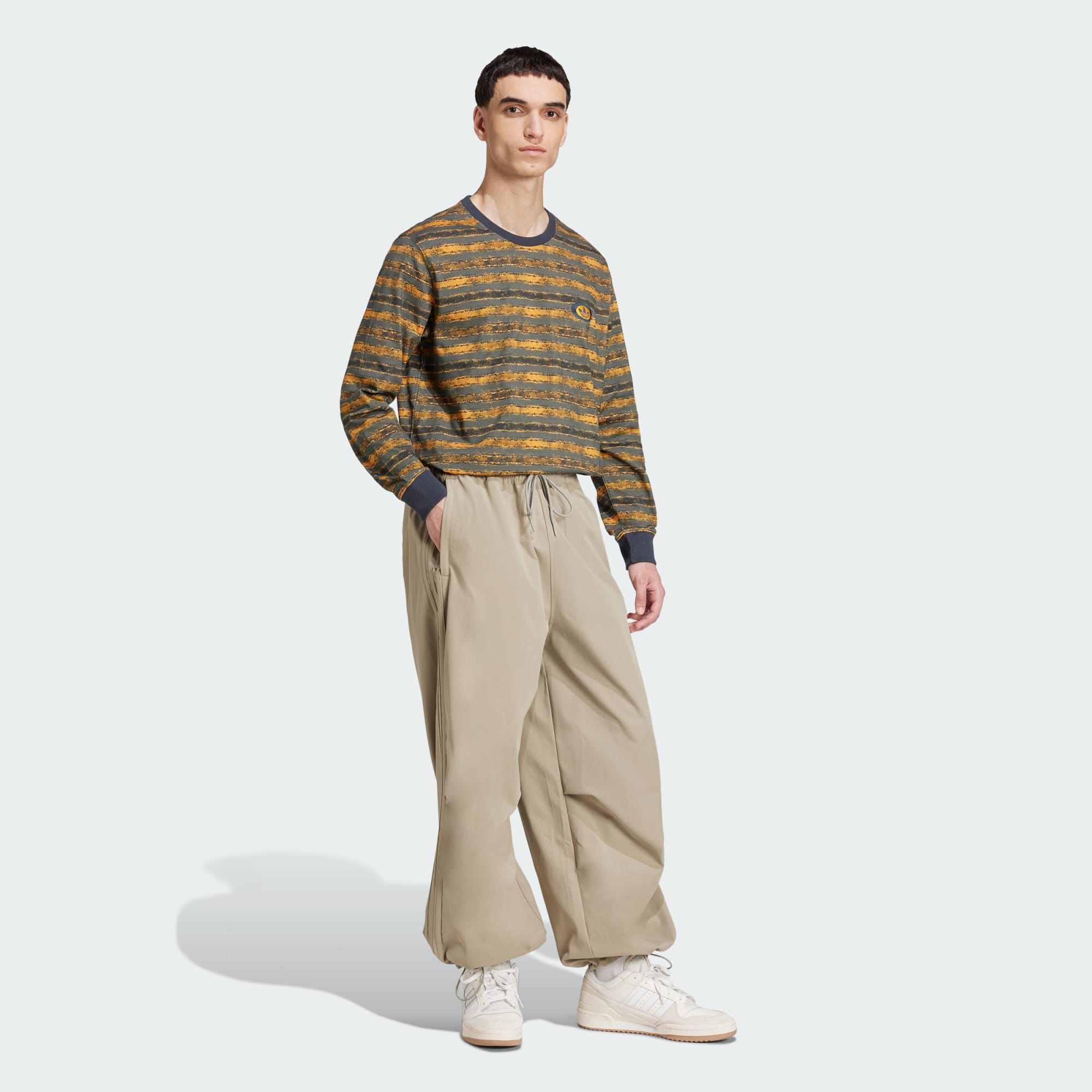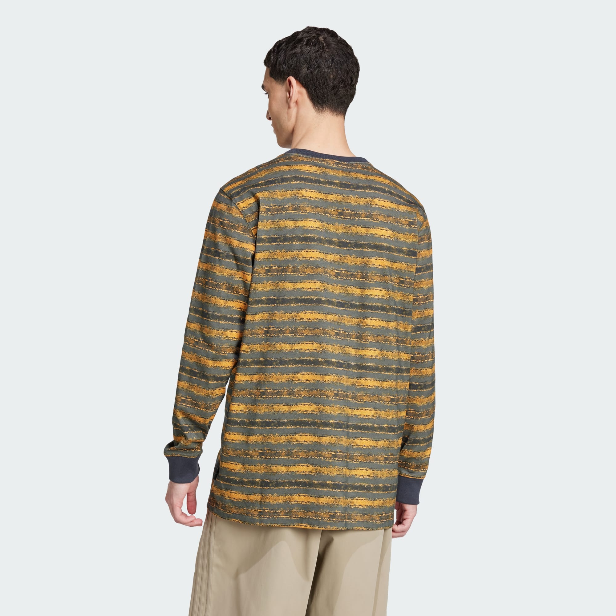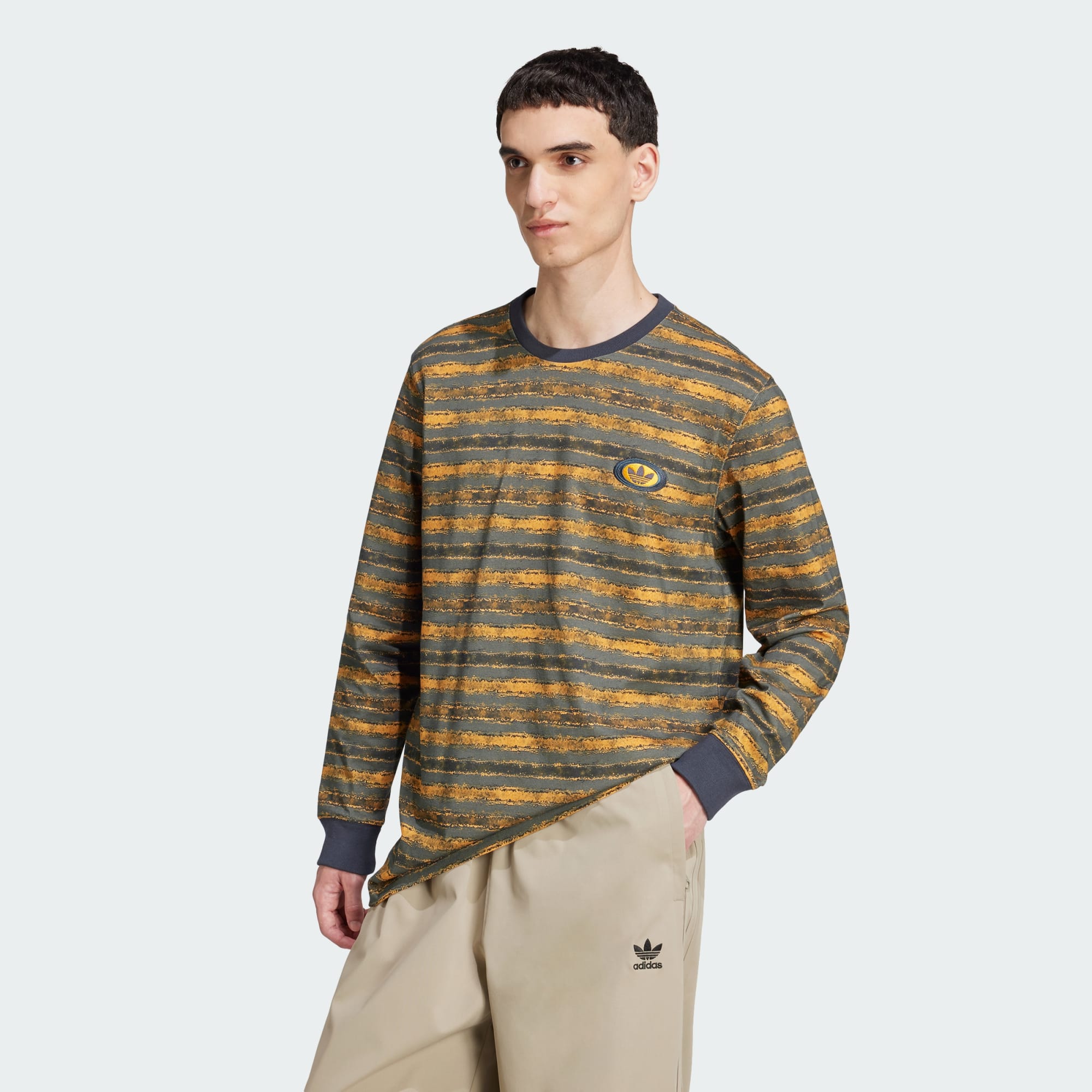Take a trip back to a different era in this long sleeve cotton tee from adidas Originals. Inspired by the gritty, maximalist style of the '90s grunge era, this loose-fit tee is made from mid-weight cotton jersey fabric for a soft feel with some substance to it. Layer it under a jacket or a hoodie, and match it with corduroys, cargo pants or jeans with shredded knees, just like the cool kids did back in the day.