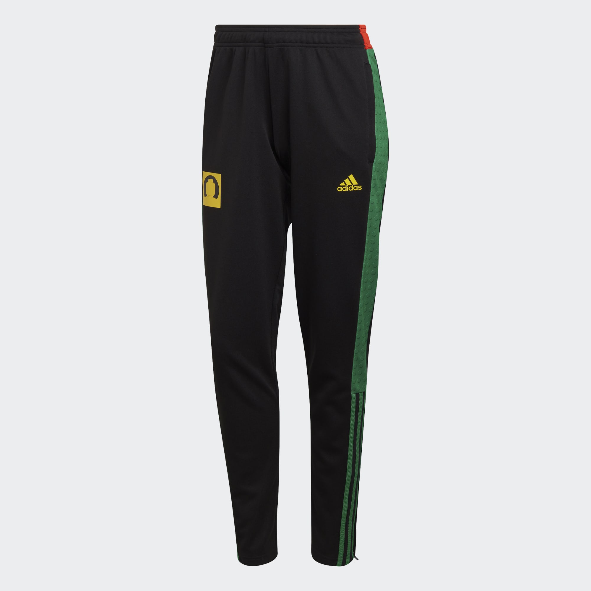Out there on the football pitch, the excitement is building. This fun take on Tiro track pants is part of the LEGO Group and adidas collection. Blocks of colour down the legs stand out with a LEGO® brick-style texture and a team badge on the hip that takes the form of a LEGO® minifigure head. However much you put into your game, AEOREADY wicks away moisture to keep you comfortable. Ankle zips ensure easy removal when playtime is over.