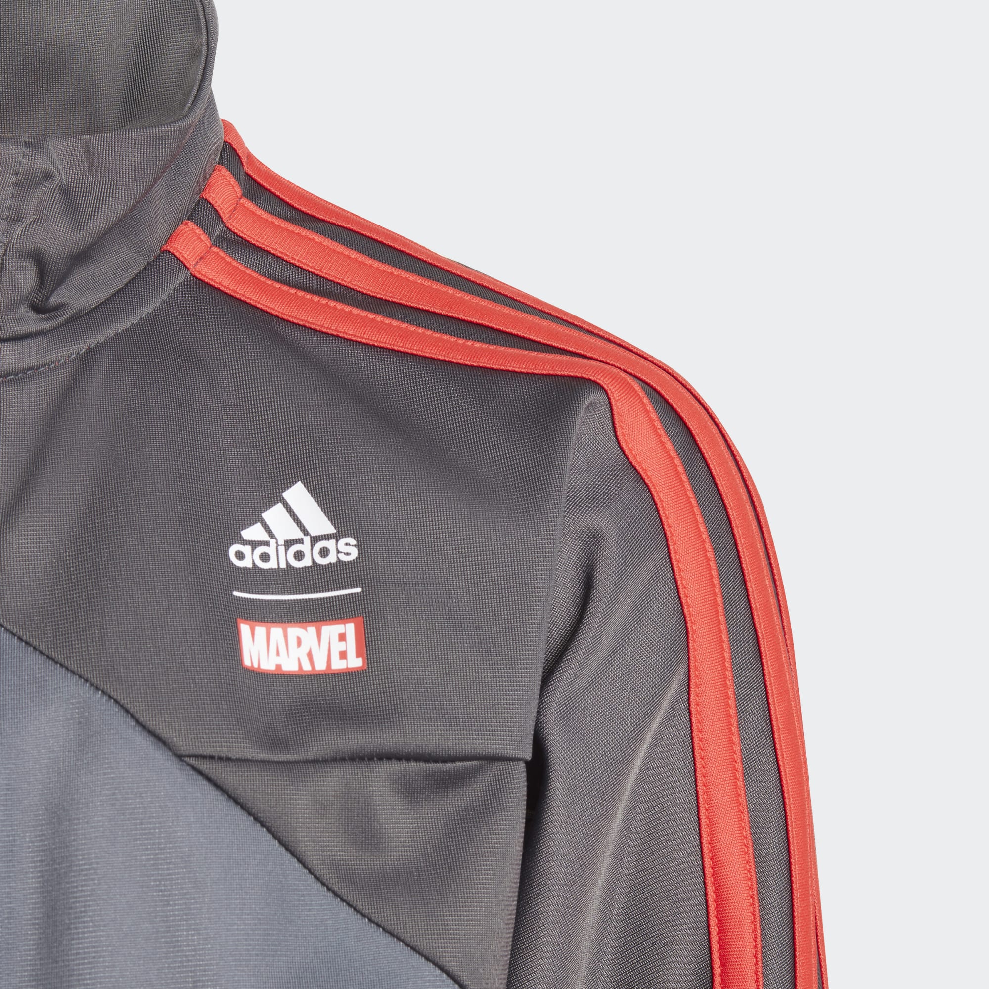 It doesn't get much better for young Marvel fans. This kids' adidas track jacket flashes an allover print featuring Marvel's Spider-Man in his infamous Black Suit. Signature 3-Stripes along the shoulders bring that classic athletic look. Raised, textured artwork makes it all come to life.Made with 100% recycled materials, this product represents just one of our solutions to help end plastic waste.