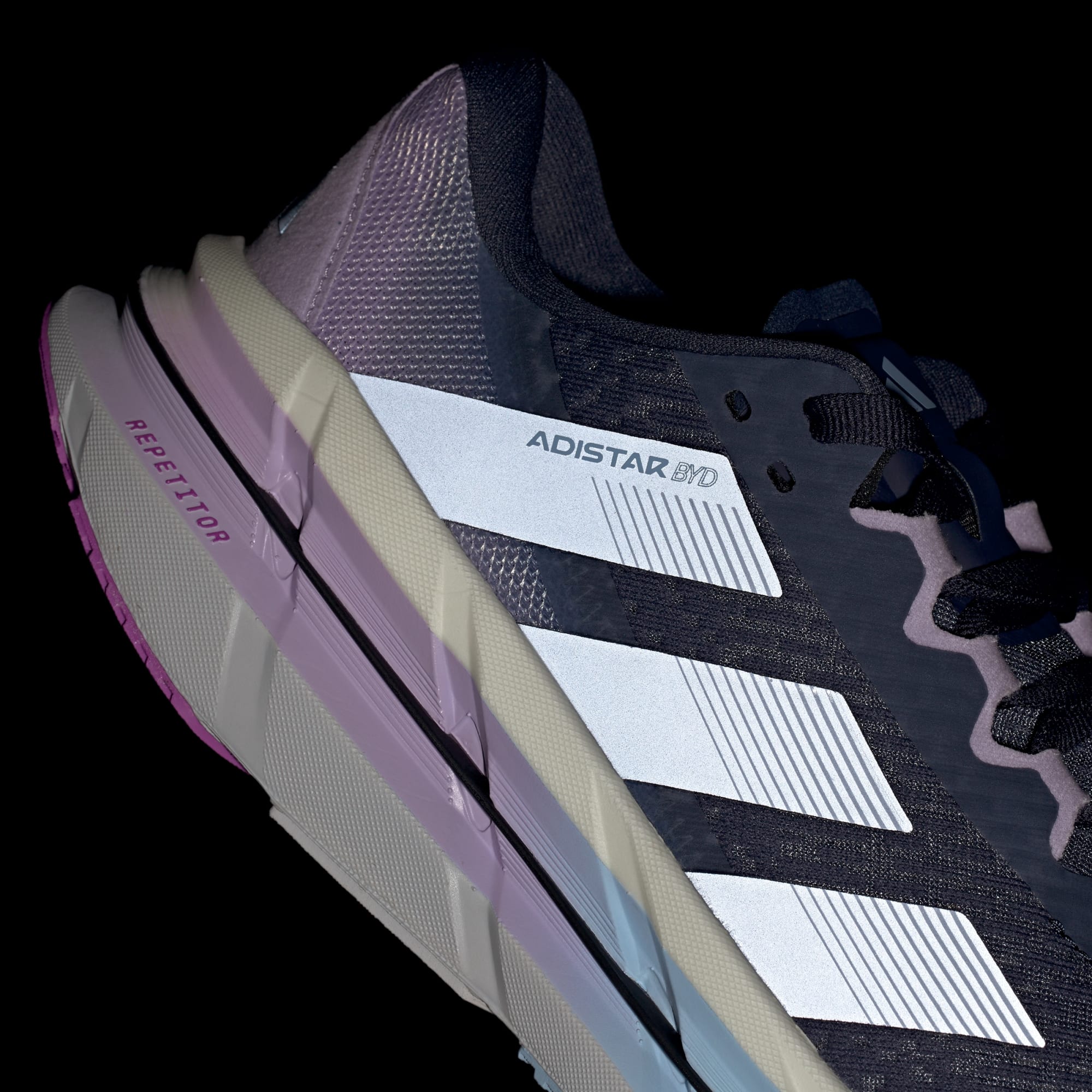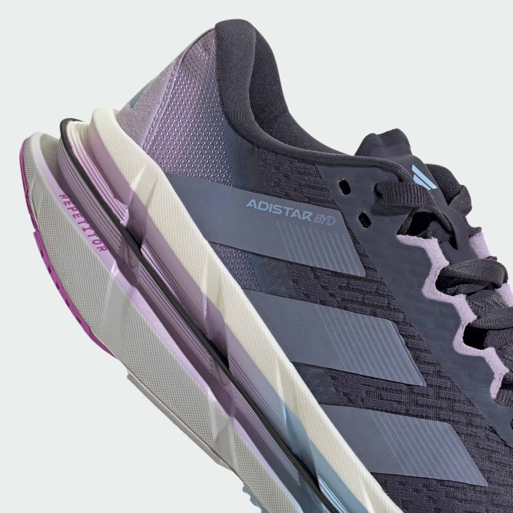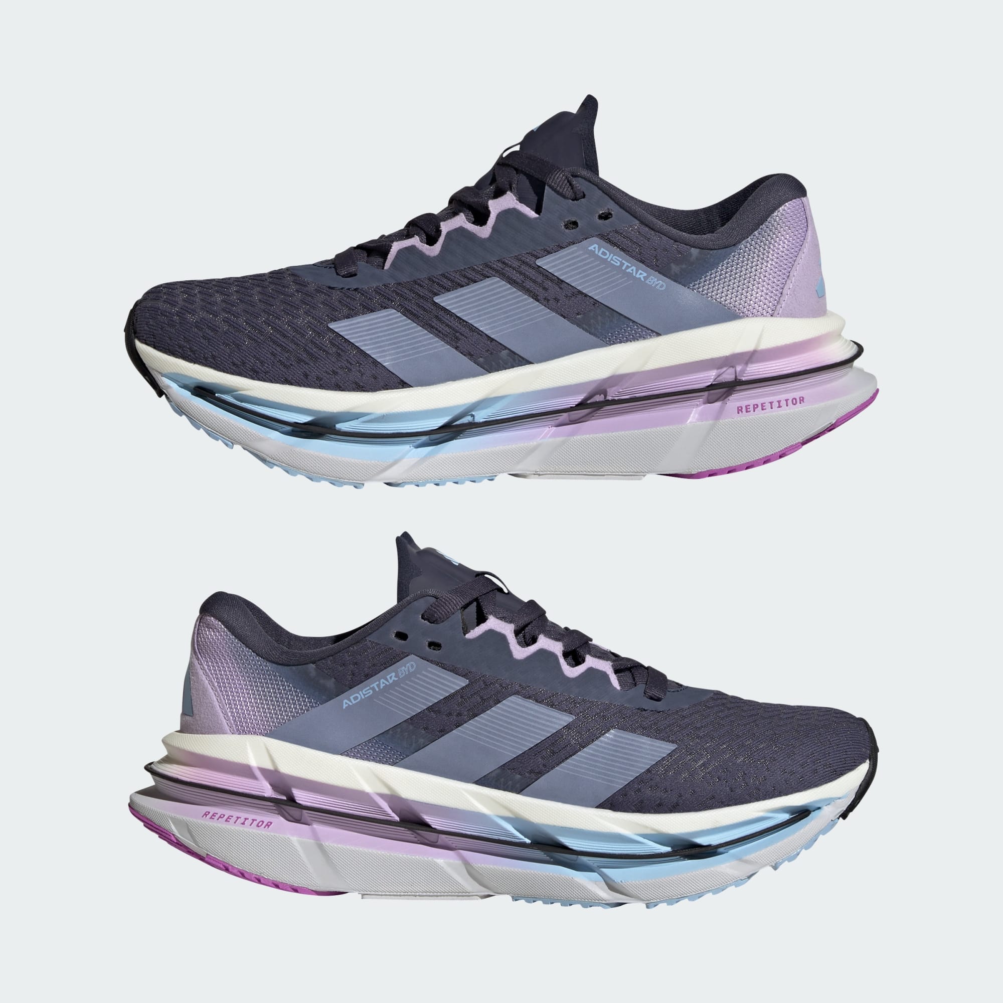 When the day calls for a distance run, answer with a fast, steady pace in these Adistar running shoes from adidas. A REPETITOR 2.0 midsole delivers an energetic feel to your stride while cradling the heel for extra support across the kilometres. Lightstrike Pro cushioning and a Distance Drive carbon-infused plate underfoot keep you going strong over the long haul. A Continental™ Rubber outsole offers confident traction on wet and dry surfaces so you can push for a personal record in any conditions. Adistar BYD shoes absorb shock, helping to lower the risk of overuse injuries. *Based on a study conducted by the Education and Research Department of the Isokinetic Medical Group, a Sports Medicine & Orthopedic Rehabilitation organization. In this study, 15 participants performed identical tests wearing both their own running shoes and Adistar BYD running shoes. The tests measured impact forces during repeated movements—such as jumps and sprints—to simulate the forces typically experienced while running.