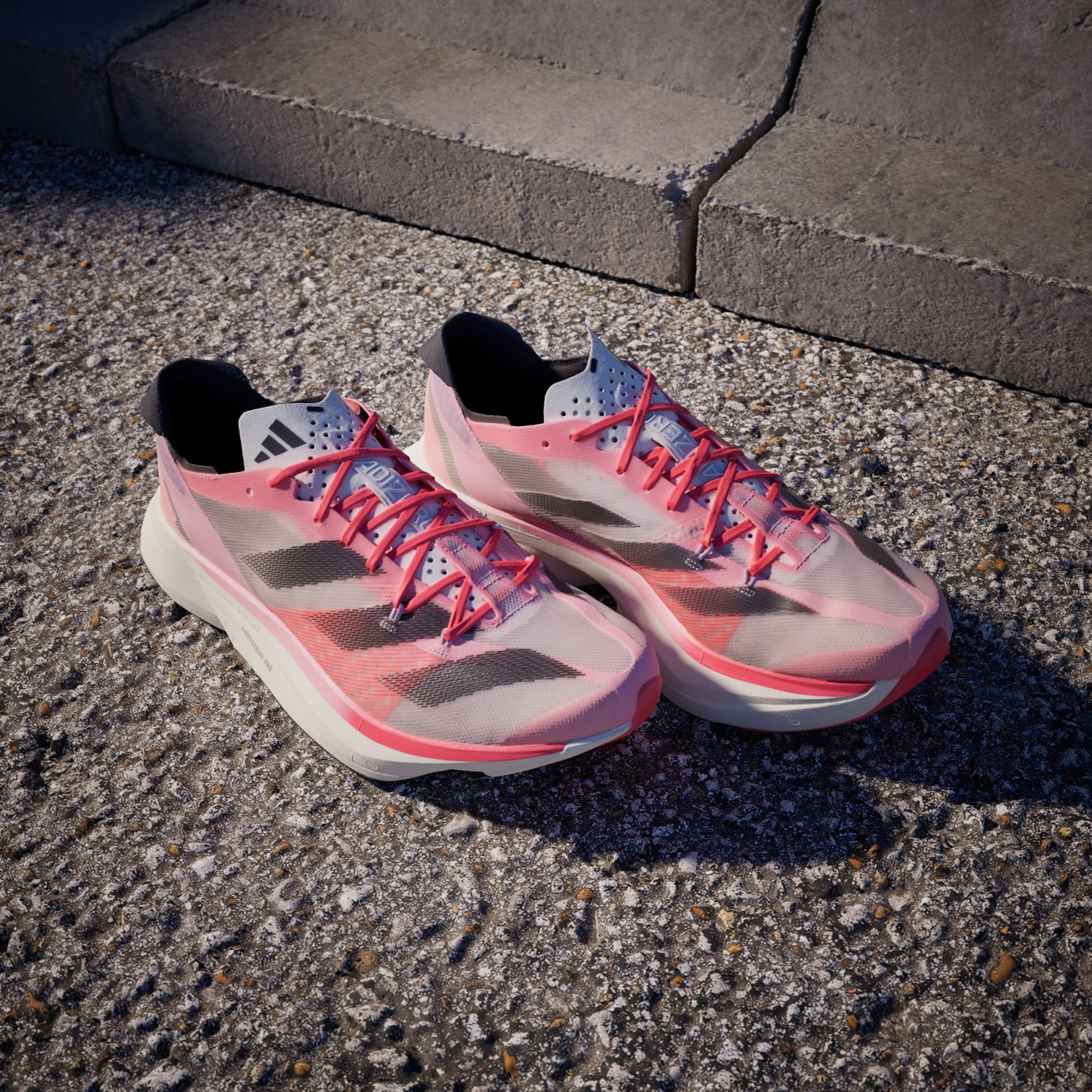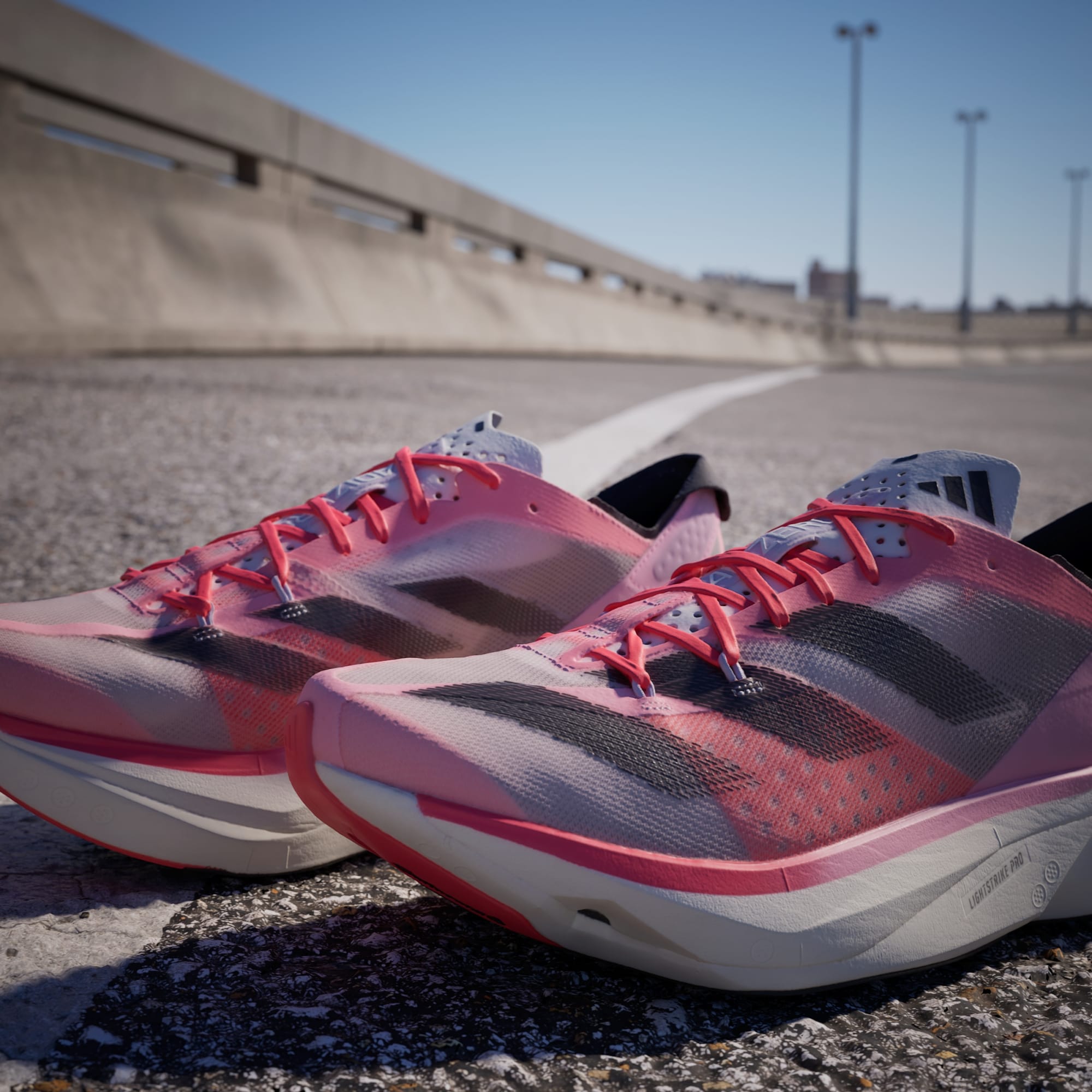 The Adizero Adios Pro 3 is the pinnacle of Adizero Racing products. It was built with and for athletes to achieve unbelievable feats. These adidas running shoes are made to optimize running efficiency. Our carbon-infused ENERGYRODS 2.0 provide lightweight stiffness for a snappy, efficient stride. Ultralight LIGHTSTRIKE PRO cushions every step with two layers of our most resilient foam to help you maintain energy over the long term. It all rides on a thin layer of textile rubber outsole for extraordinary traction in wet and dry conditions.