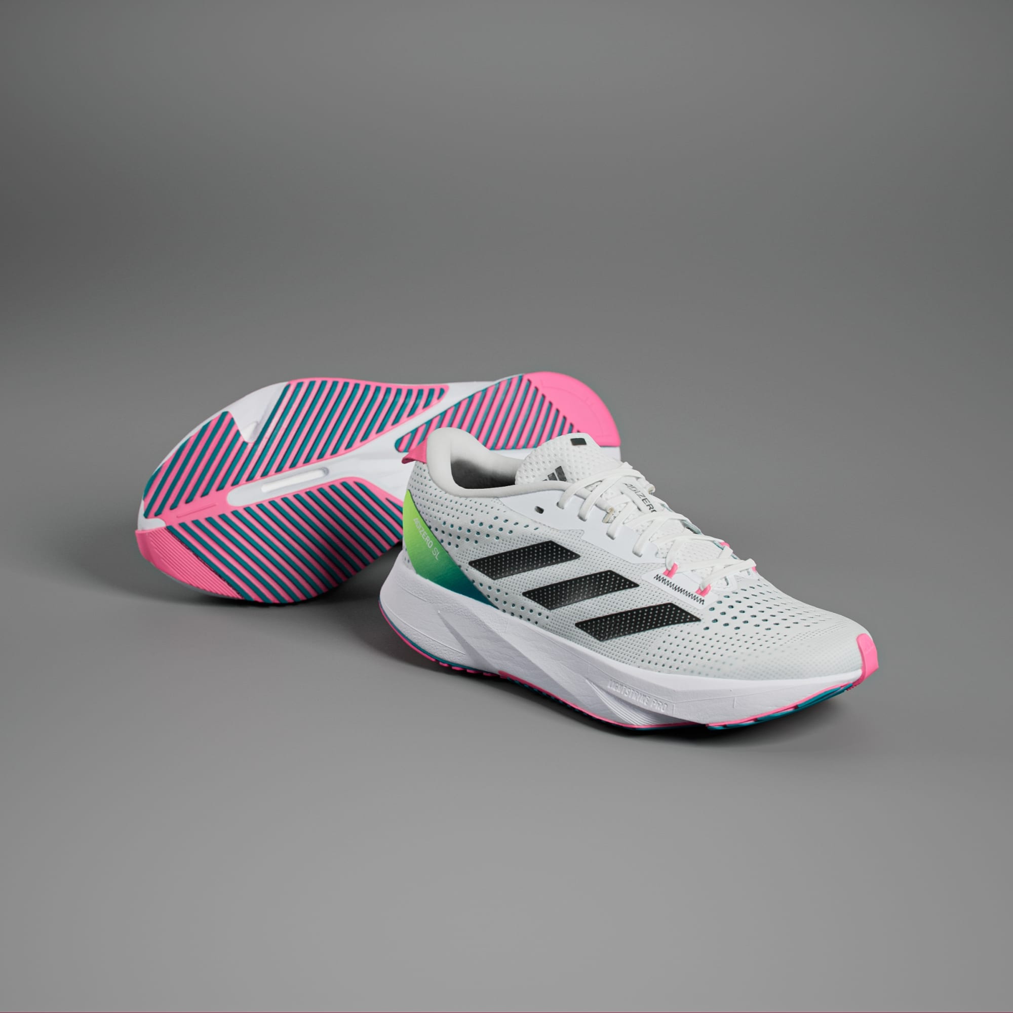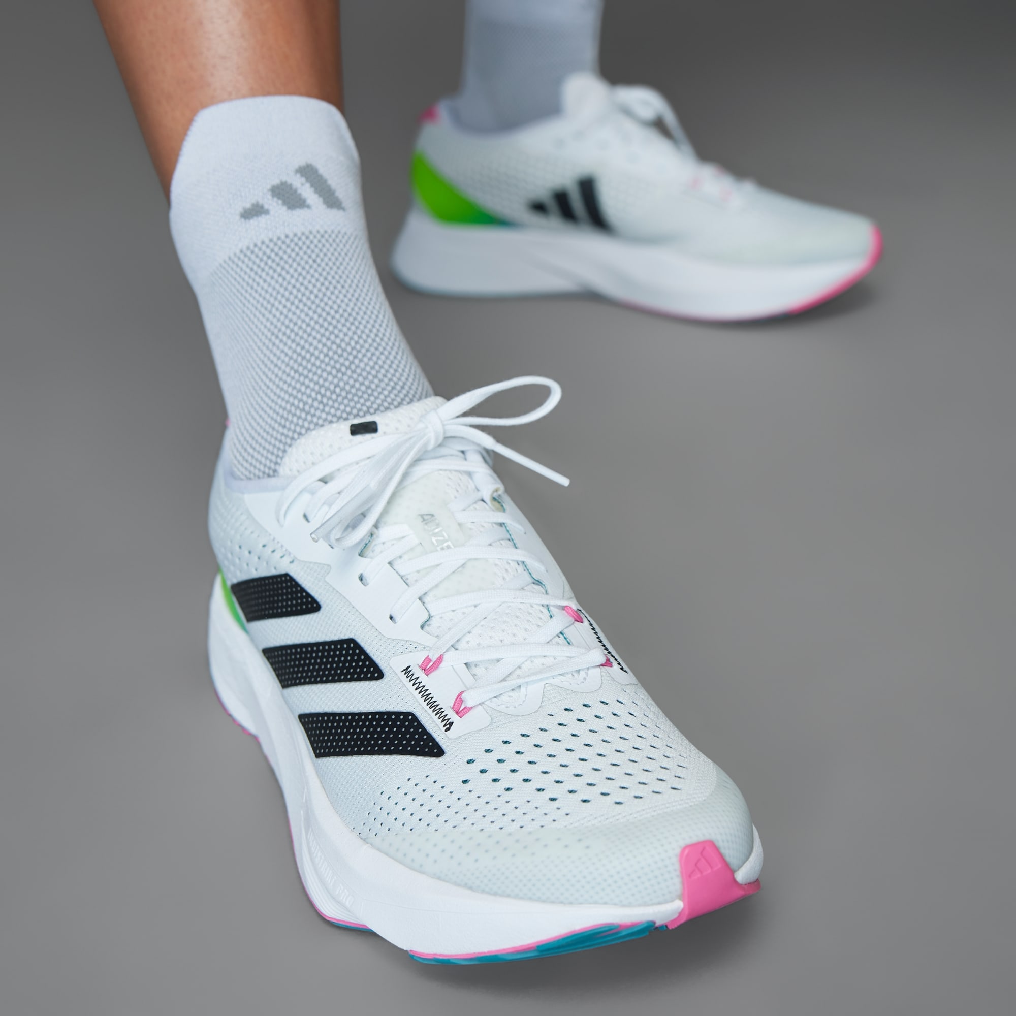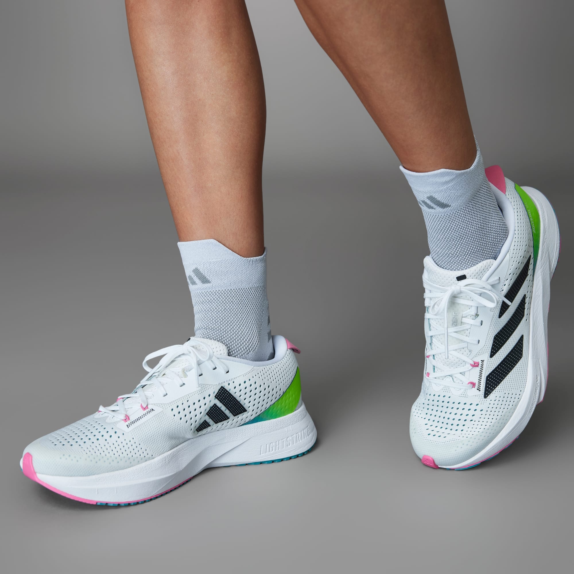 LIGHTSTRIKE PRO foam, also used in the record-breaking Adizero Adios Pro models, is strategically inserted in the forefoot area, designed for fast training runs.