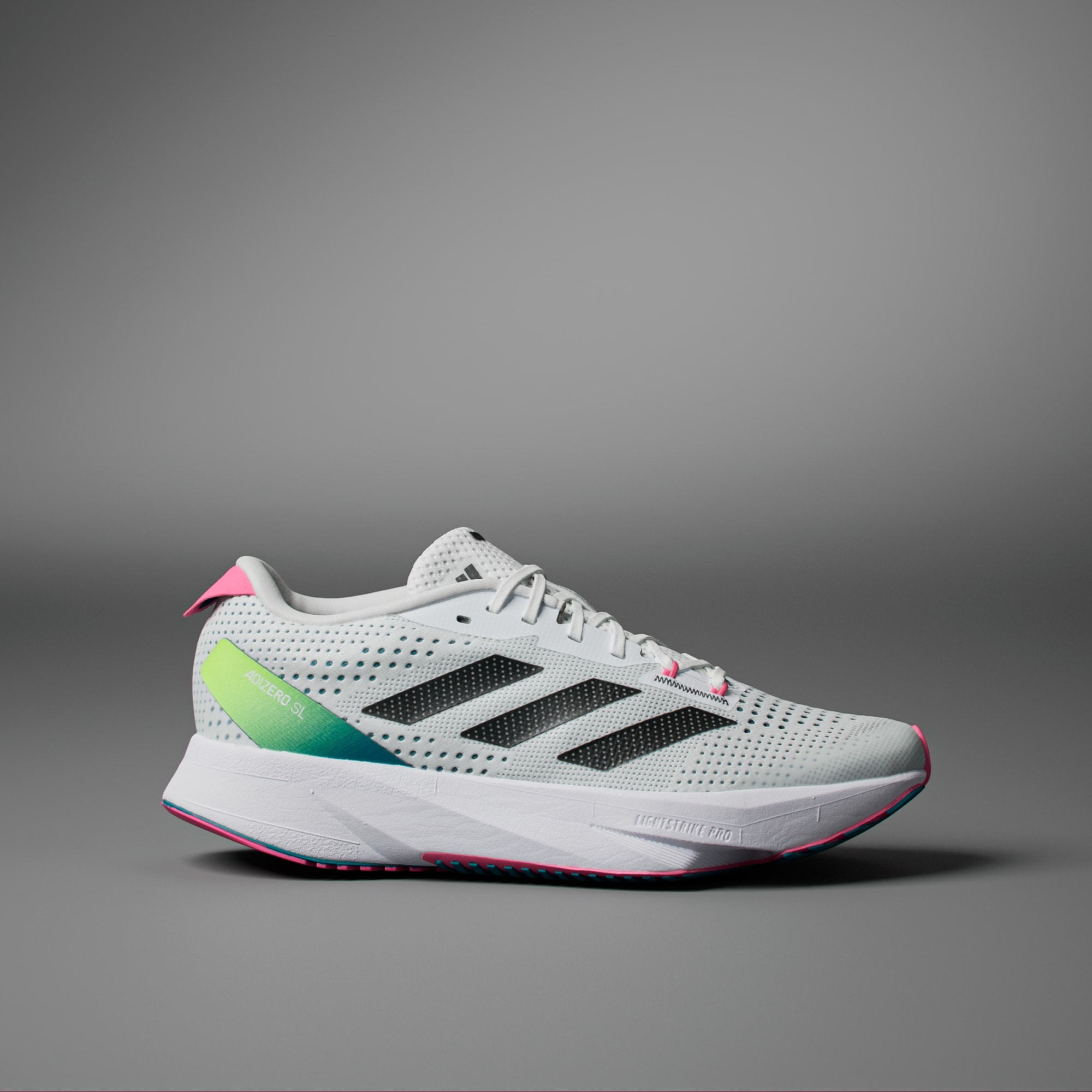 When it comes to achieving your goals, every second counts. From training to race day, powerful performances call for high-tech gear that's optimised for speed. Introducing the latest range of lightweight running staples that help you to push beyond your limits without distraction. The Adizero SL Running Shoes hand-pick the best from our world record-breaking Adizero franchise. The lightweight LIGHTSTRIKE EVA midsole delivers resilience to the midsole construction, so you can focus on the next stride, while the upper is made of a soft, engineered mesh that's zoned in key areas. A padded heel and tongue provides optimal comfort alongside the Adizero heel-blinker. The premium outsole is crafted to provide traction.