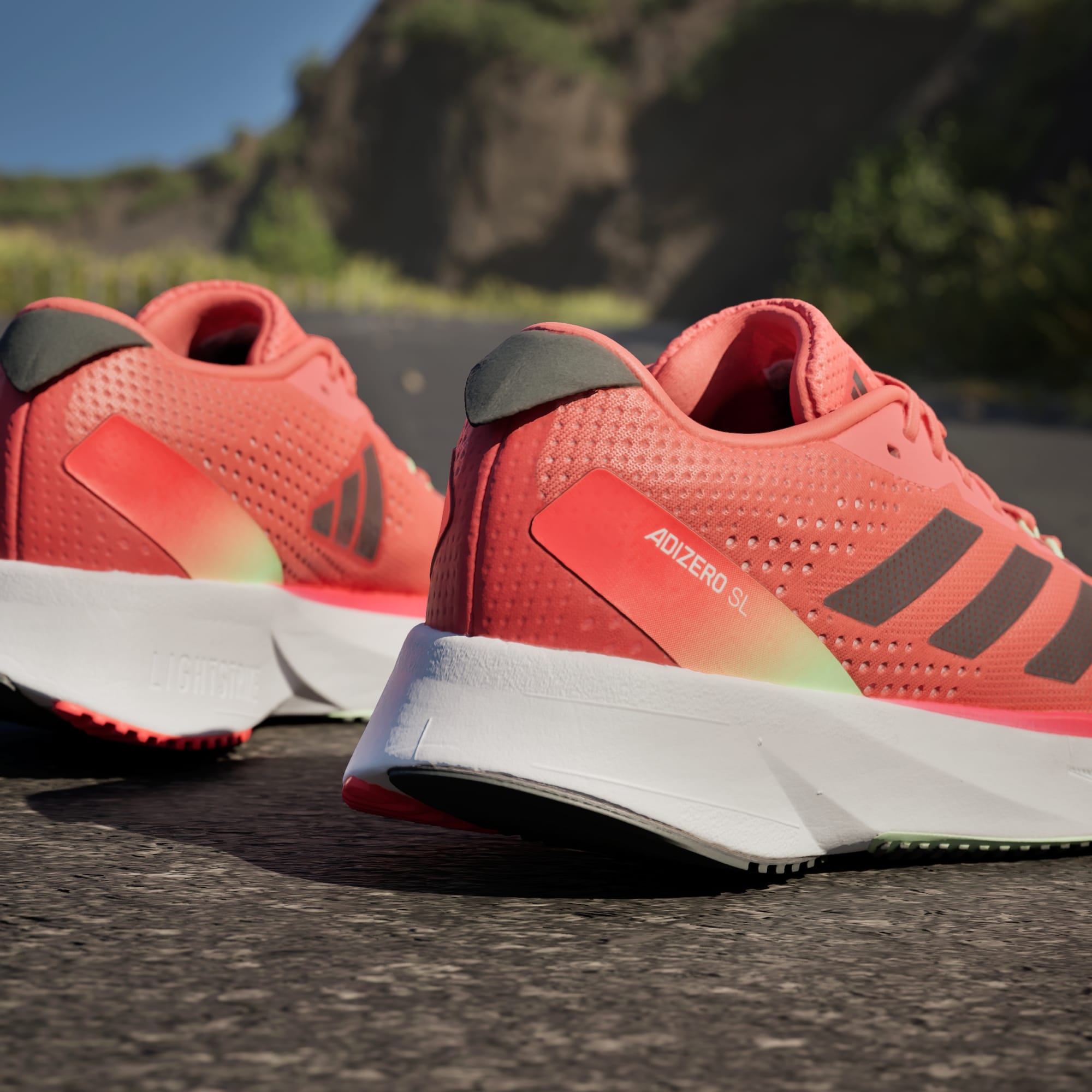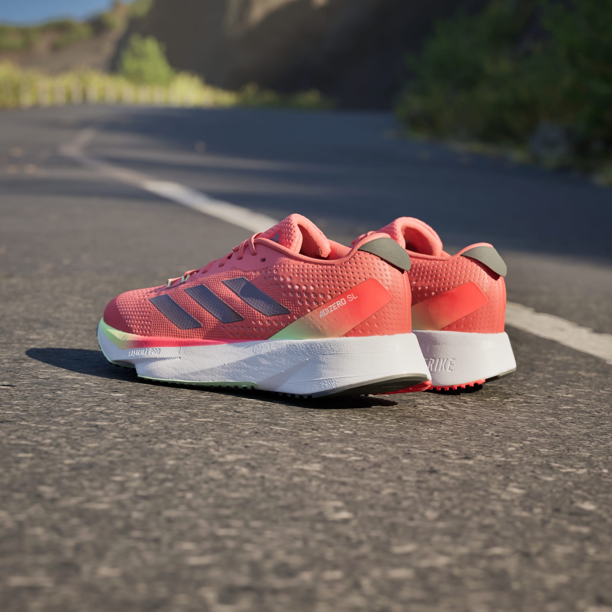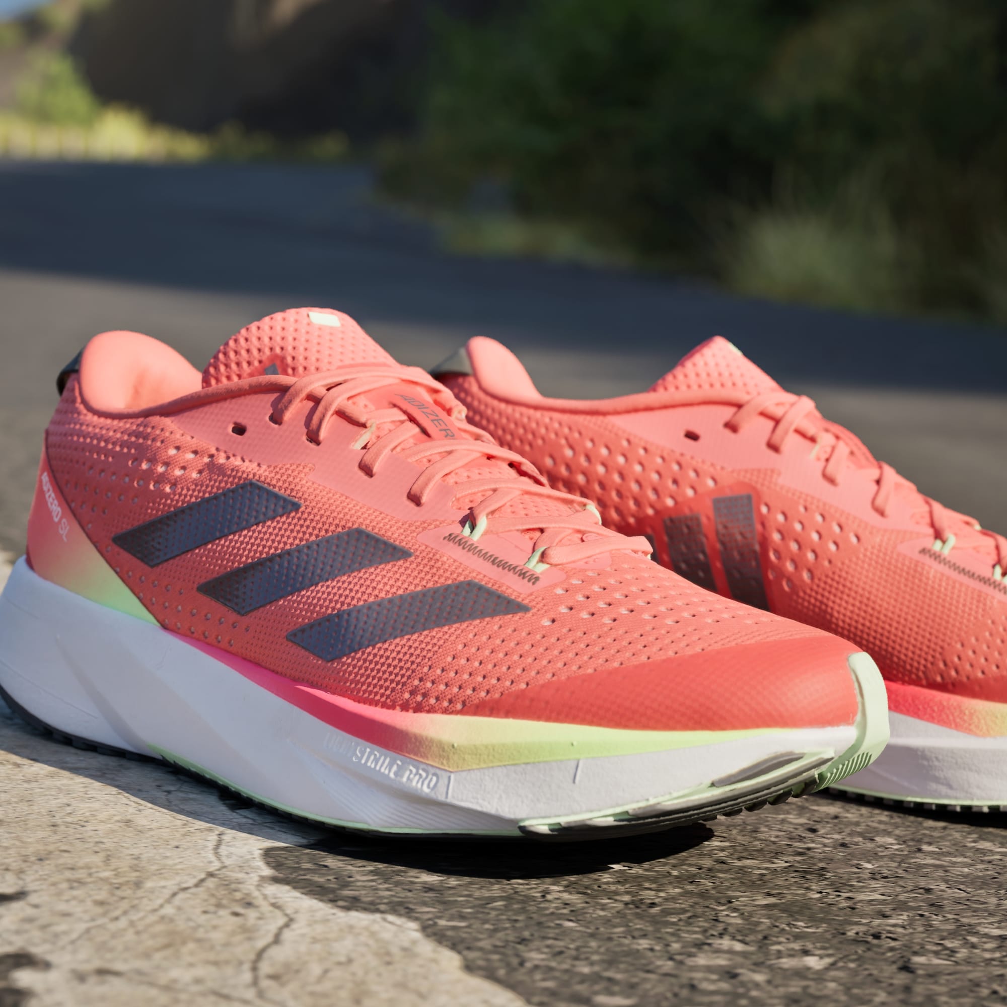 When it comes to achieving your goals, every second counts. From training to race day, powerful performances call for high-tech gear that's optimised for speed. Introducing the latest range of lightweight running staples that help you to push beyond your limits without distraction. The Adizero SL Running Shoes hand-pick the best from our world record-breaking Adizero franchise. The lightweight LIGHTSTRIKE EVA midsole delivers resilience to the midsole construction, so you can focus on the next stride, while the upper is made of a soft, engineered mesh that's zoned in key areas. A padded heel and tongue provides optimal comfort alongside the Adizero heel-blinker. The premium outsole is crafted to provide traction.