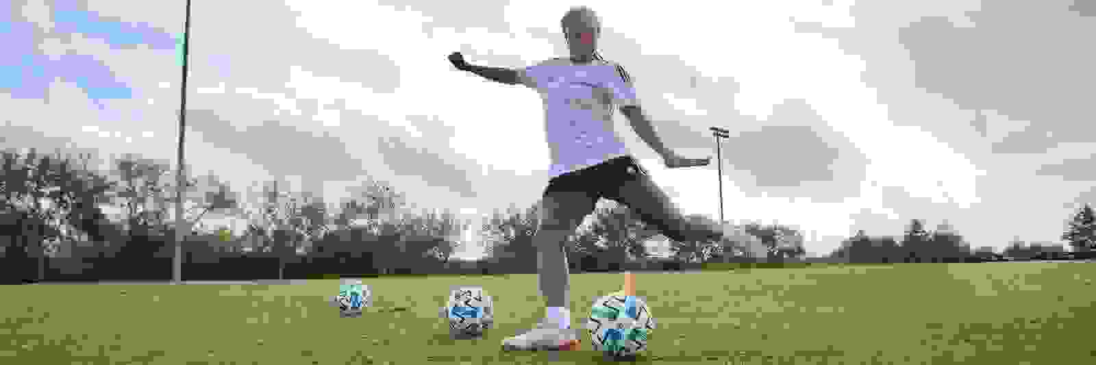 - As you shoot each ball, aim to hit one of the four corners of the goal, using the cones to help visualise.