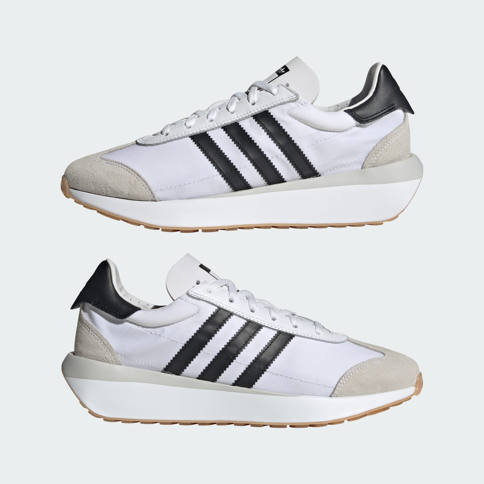When retro meets innovation, your next pair of shoes is born. Inspired by the classic adidas Country profile, these must-haves rock a crisp T-toe overlay, serrated 3-Stripes and an unmistakable heel. The nylon upper and suede overlays mix up materials for a sleek look, but it's the leather eyestay that adds a premium touch of luxury. Comfort comes in strong with a cushy EVA midsole plus a grippy rubber outsole to grab the ground beneath your feet.