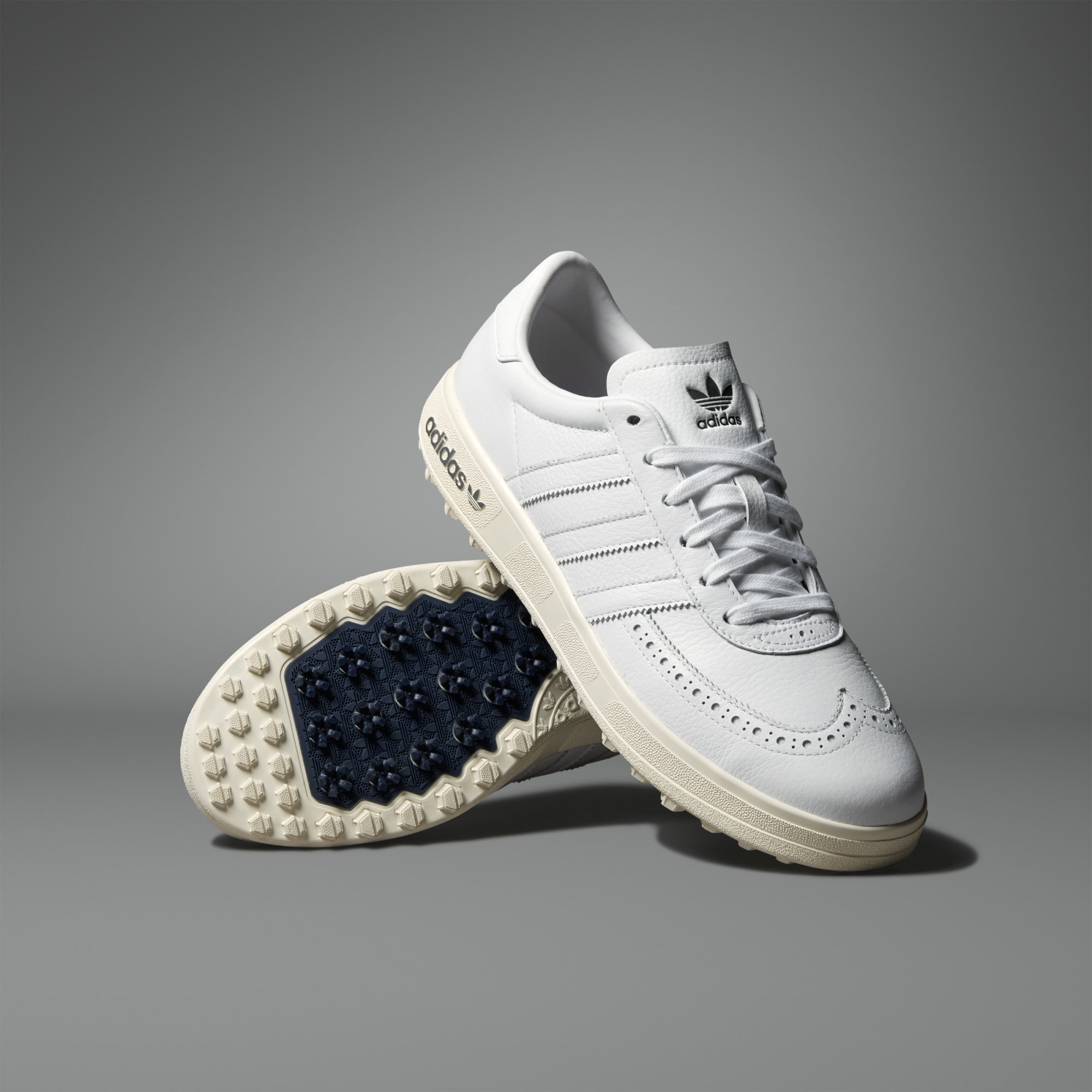These Coursecup Spikeless Golf Shoes bring the legacy look of adidas Originals to the fairway. From the Gripmore® outsole for a stable stance to the water-resistant leather upper, the Coursecup delivers performance along with a fresh take on heritage style. The Adiwear outsole offers easy-wearing comfort on and off the course.