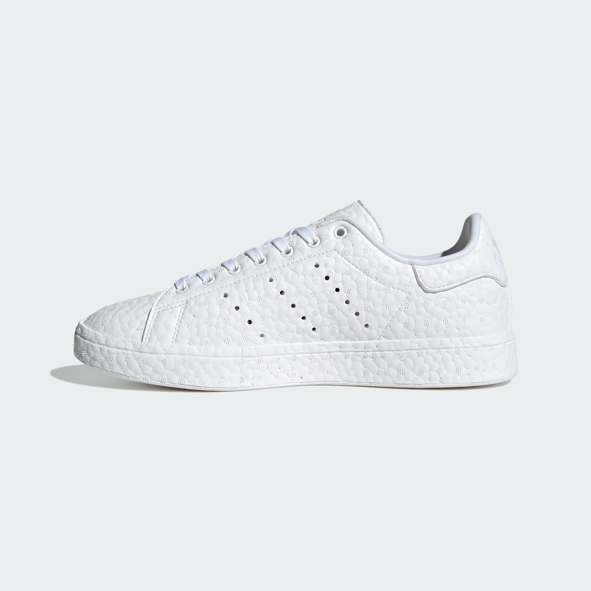 Futuristic minimalism. Purpose and detail. A reinvention of the classics. These are the themes of London designer Craig Green, one of the most influential creative forces of his time. Taking the familiar into esoteric territory, he teamed up with adidas Originals to reimagine the timeless Stan Smith shoes. Familiar cushioning and responsiveness is multiplied in this shoe, with the iconic BOOST being featured both in the midsole and the upper. Even with a fresh look, the hallmarks stay intact, like perforated 3-Stripes and a low-profile cupsole.