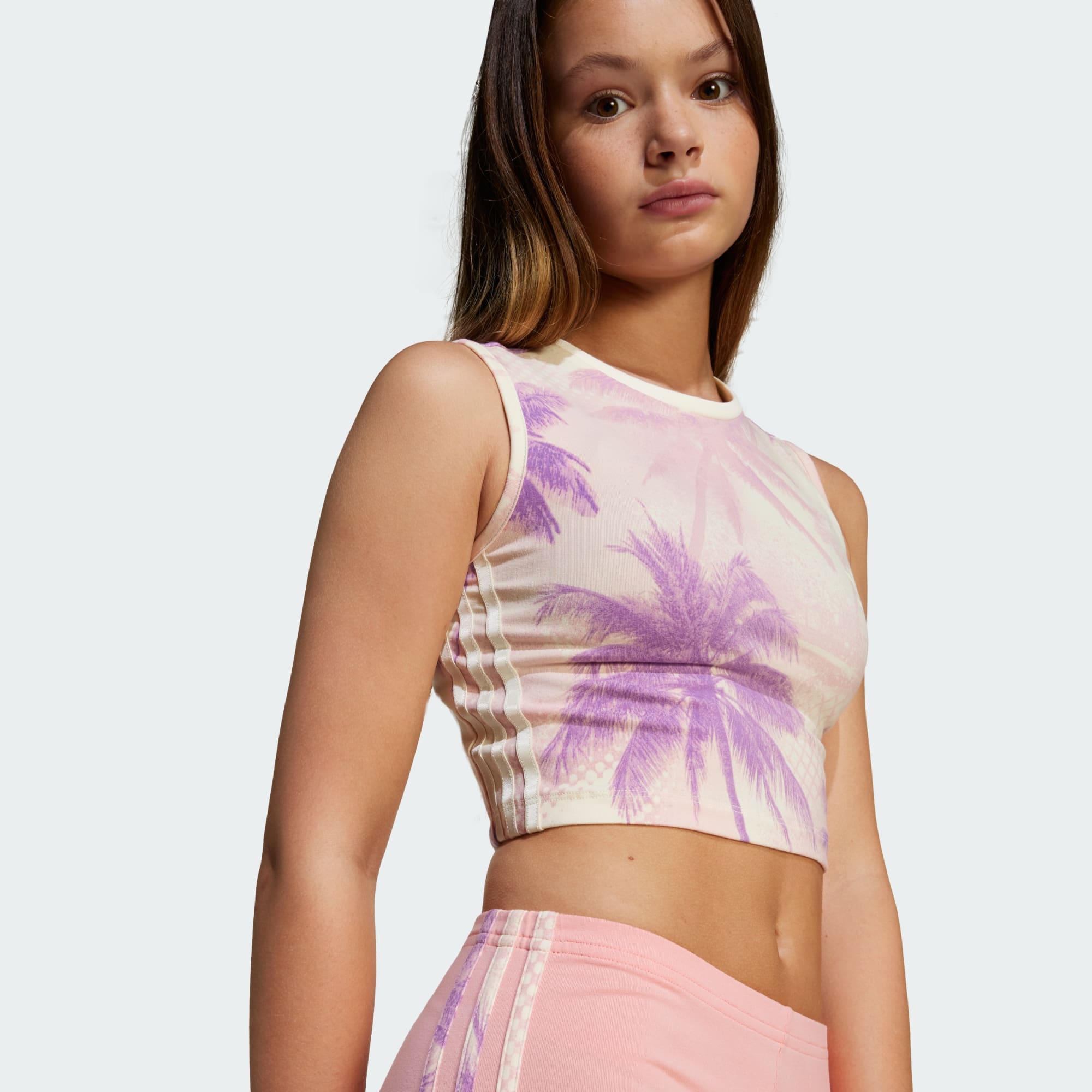 Radiate sunny vibes in this juniors' crop tank top from adidas. Soft and stretchy fabric keeps you comfortable whether you're strolling through the park or lounging at an outdoor cafe. Team it with your favourite high-waisted shorts and retro-inspired kicks for a laid-back look that's all about easy living.