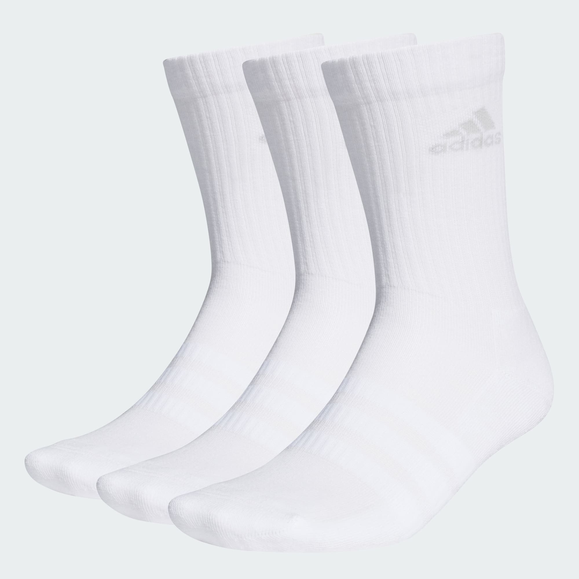Made for all-day comfort, this trio of crew socks offers heel-to-toe cushioning and a cotton-rich build. A smooth toe seam and knit-in arch support enhance the fit and feel. Clean adidas branding completes the classic athletic look.