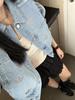 A cropped denim jacket with glittering rhinestones.