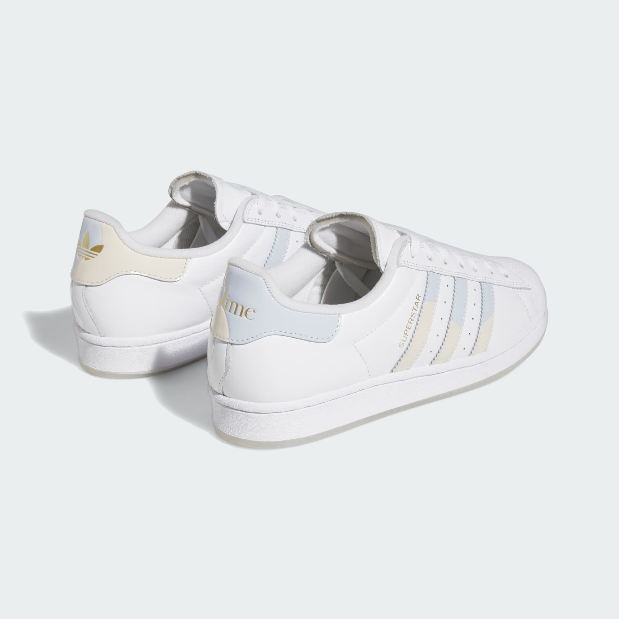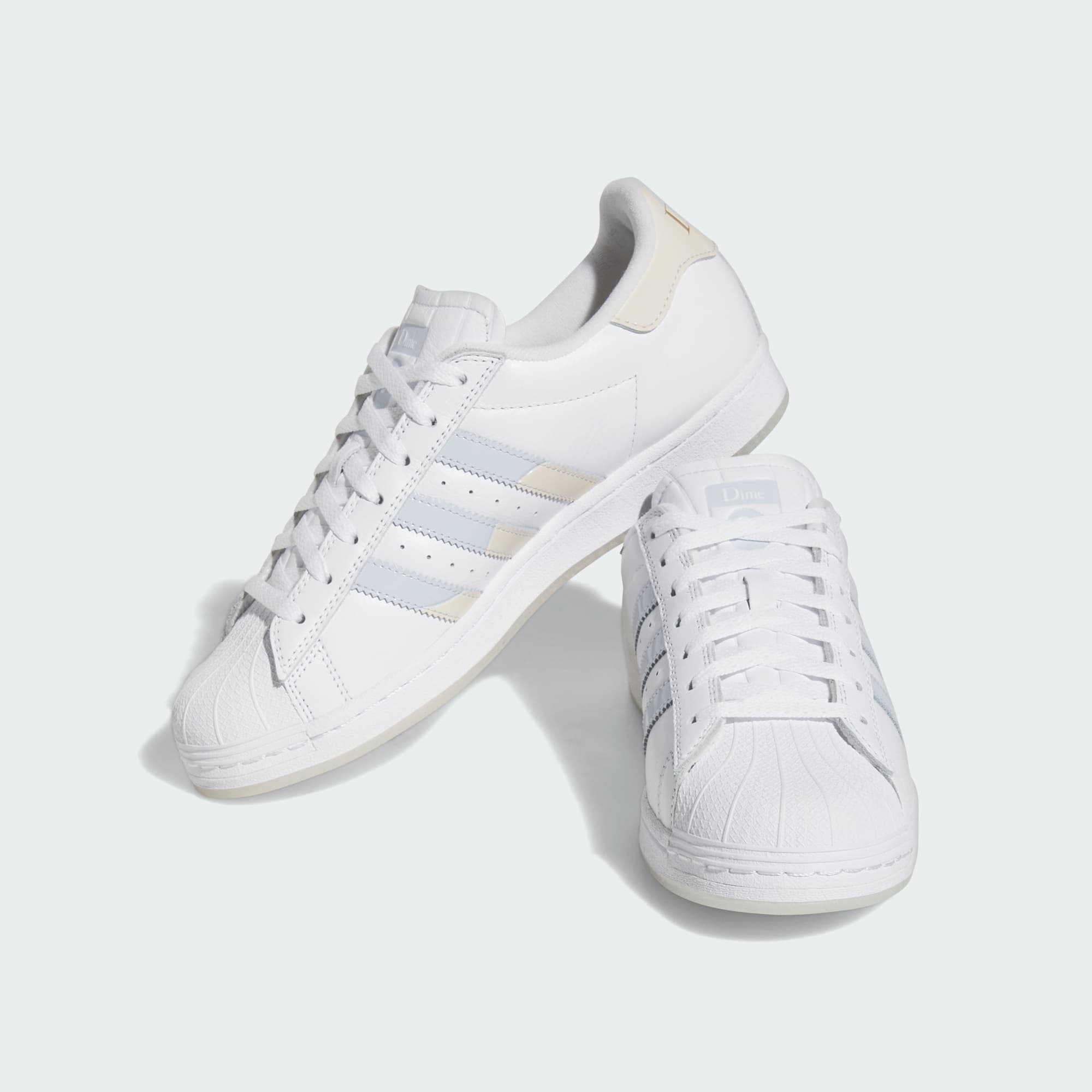Born in the 1969, the adidas Superstar shoe has become icon. The Dime Superstar ADV Shoes add the Montreal-based brand's sophisticated and fun take to the classic style with ADV enhancements for skateboarding. Using a clean white full-grain leather colourway, Dime complements a classic with pops of gold branding, their signature wave design language, a unique translucent outsole and a second lace option.