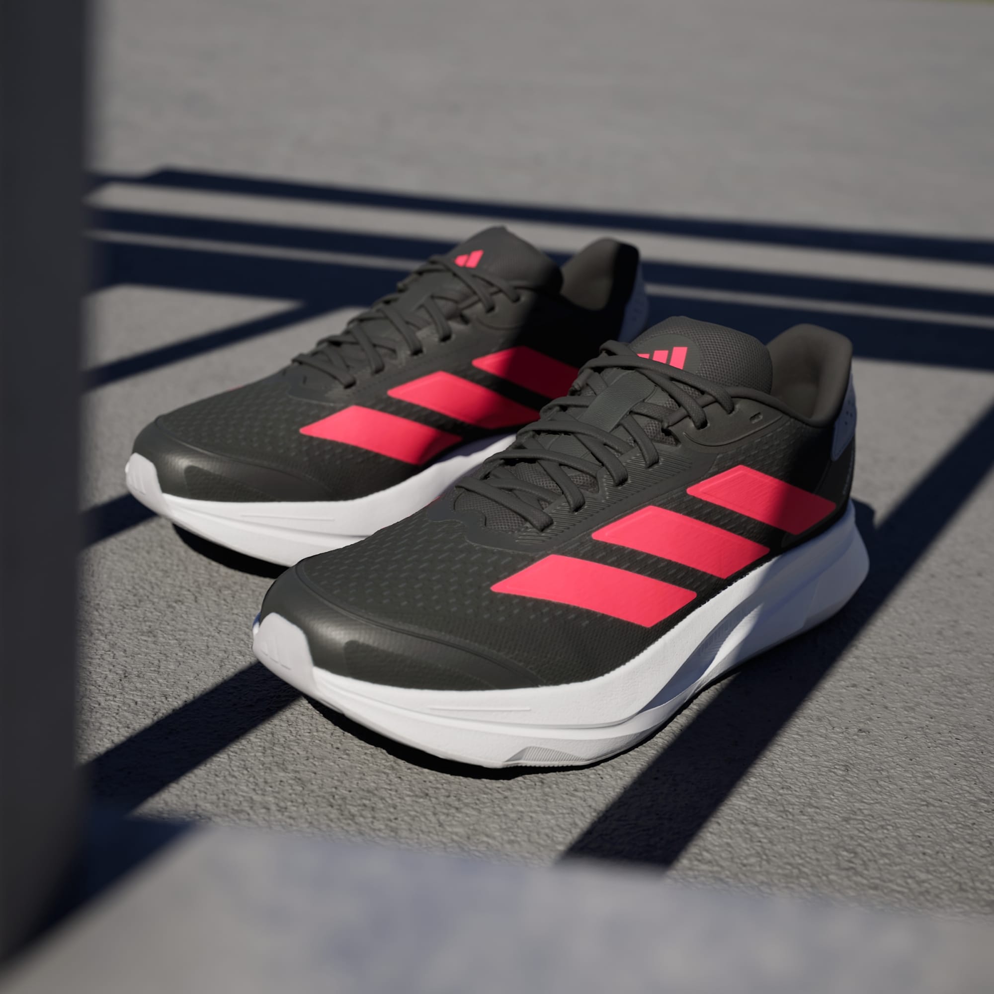 You signed up for your first race. Now it's time to train. As you build consistency, speed and endurance, these adidas running shoes support you — one run at a time. They're light and stable with a breezy mesh upper and a full-length LIGHTMOTION midsole that responds to your stride. A durable Adiwear outsole grips the pavement or track.