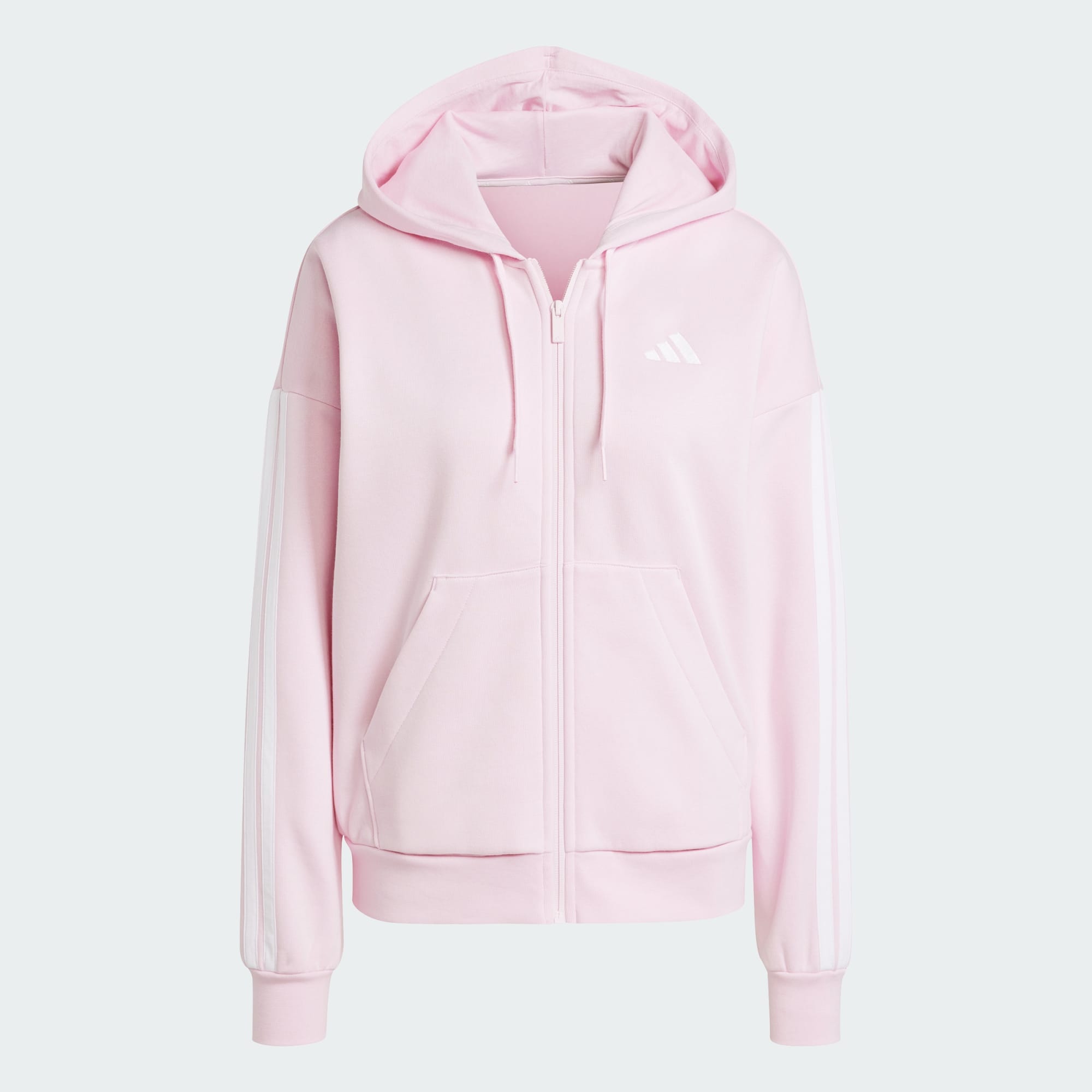Wherever the day takes you, this adidas hoodie has you covered. The soft brushed-back fleece build feels cosy and warm, and the classic 3-Stripes down the sleeves keep your athletic spirit on display. A 3 Bar Logo on the chest adds an extra sporty touch. The full-zip front and drawcord-adjustable hood let you customise your coverage. By choosing recycled, we are able to reuse materials that have already been created, which helps to reduce waste. Renewable materials choices will help us to remove our reliance on finite resources. Our products made with a blend of recycled and renewable materials feature at least 70% total of these materials.