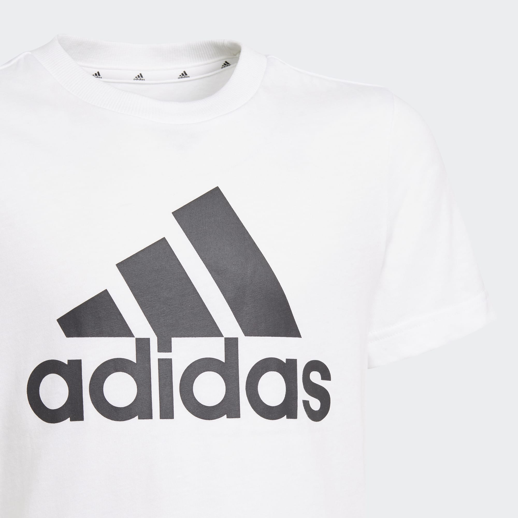 You can never have too many comfortable t-shirts. This juniors' tee is made of soft cotton and cut to help you move. It has a ribbed crewneck for a classic look. A bold contrast adidas Badge of Sport stands out on the chest.