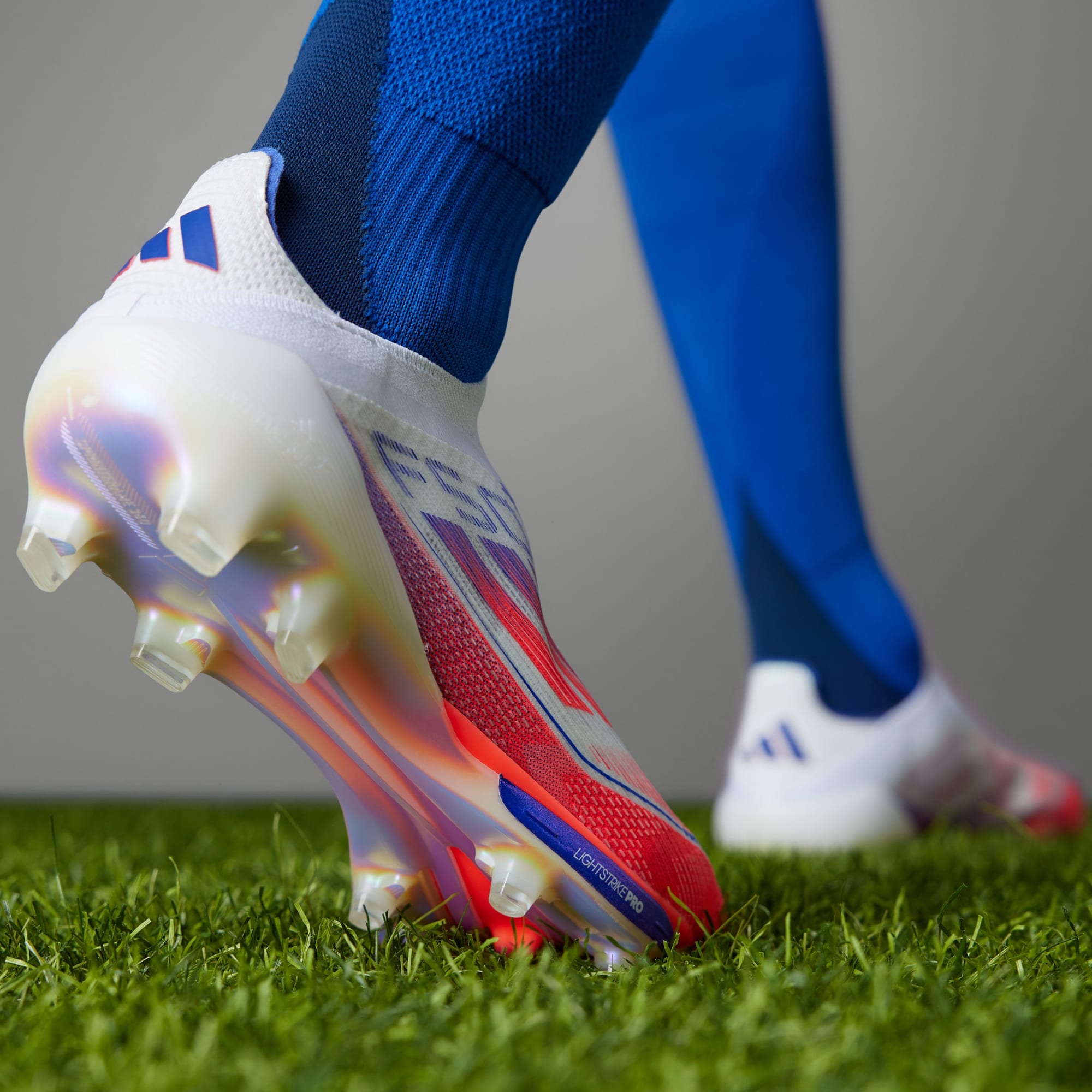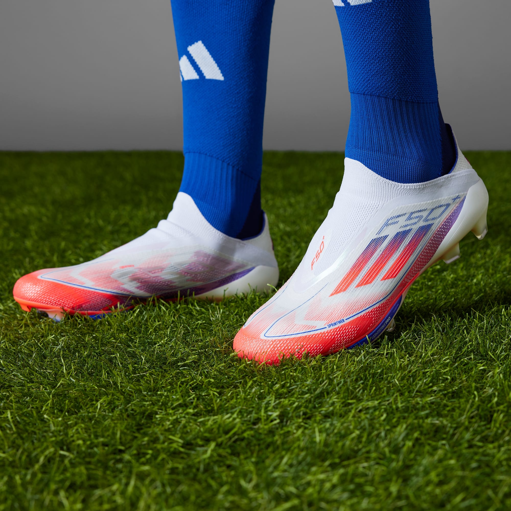 We have engineered the adidas F50+ to reach the pinnacle of fast. Our SPRINTFRAME 360+'s foam-infused structure and iconic heel counter are designed for explosive movement in any direction. The LIGHTSTRIKE PRO's high-performance foam insert provides an increased absolute energy return in forefoot bending compared to our lower F50 price points with a traditional tooling plate. Finally, our lightweight FIBERTOUCH UPPER delivers comfort and support to your foot when moving at maximum speed.