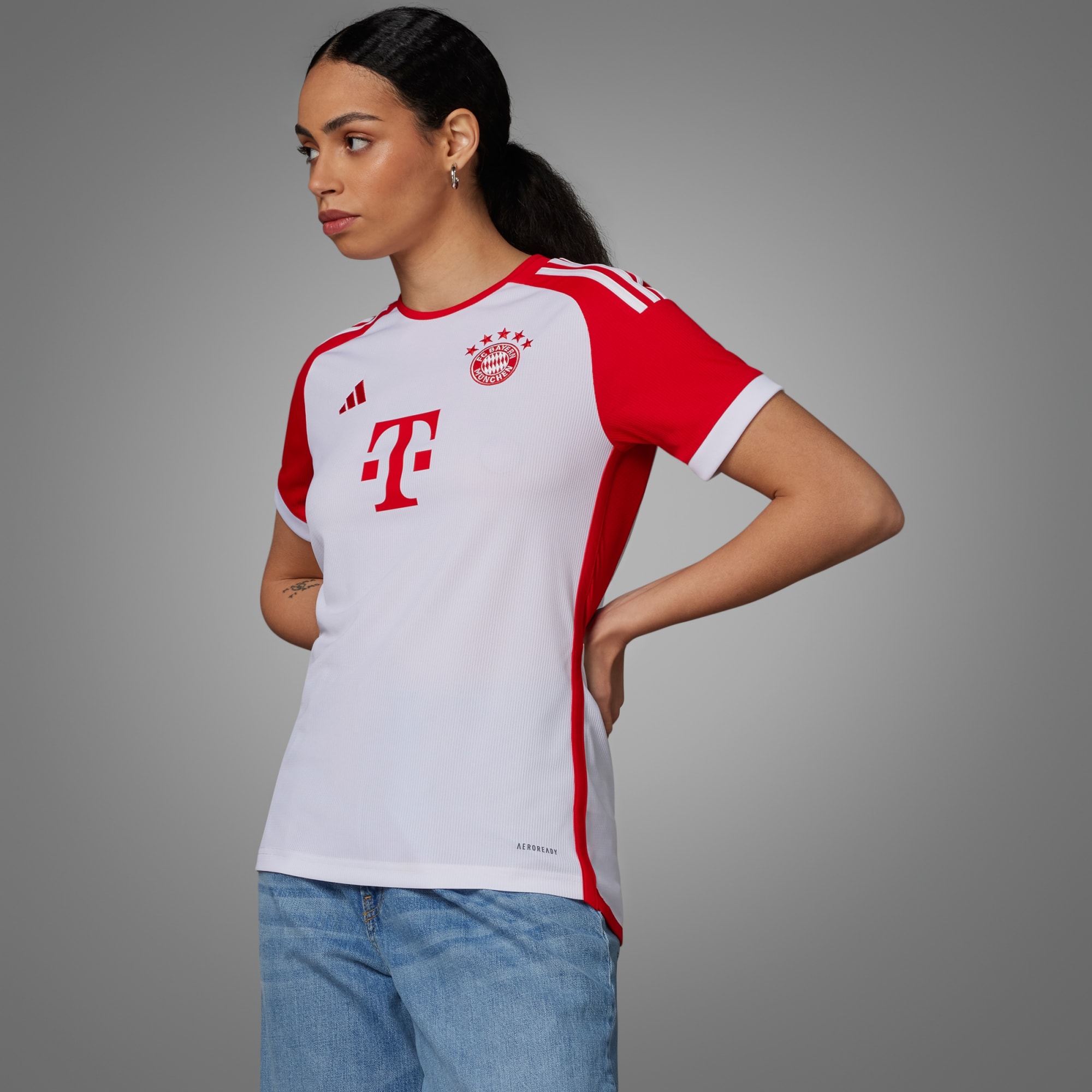 A modern reinterpretation of the legendary club's first kit, the FC Bayern Home Authentic Jersey pays tribute to the great players of the past. The first full red and white kit for 30 years, it brings a nostalgic yet fresh twist to a team famed for its football consistency.Cut for a close fit, the jersey is crafted entirely from 100% recycled polyester double knit and finished with a premium ribbed crewneck. Behind the scenes, sweat-wicking AEROREADY fabric helps to keep you feeling comfortable whether you're headed for the grandstands or the pitch. Flash your homegrown pride thanks to the embossed FC Bayern München logo, 'Mia San Mia' signoff at the back and embroidered crest.