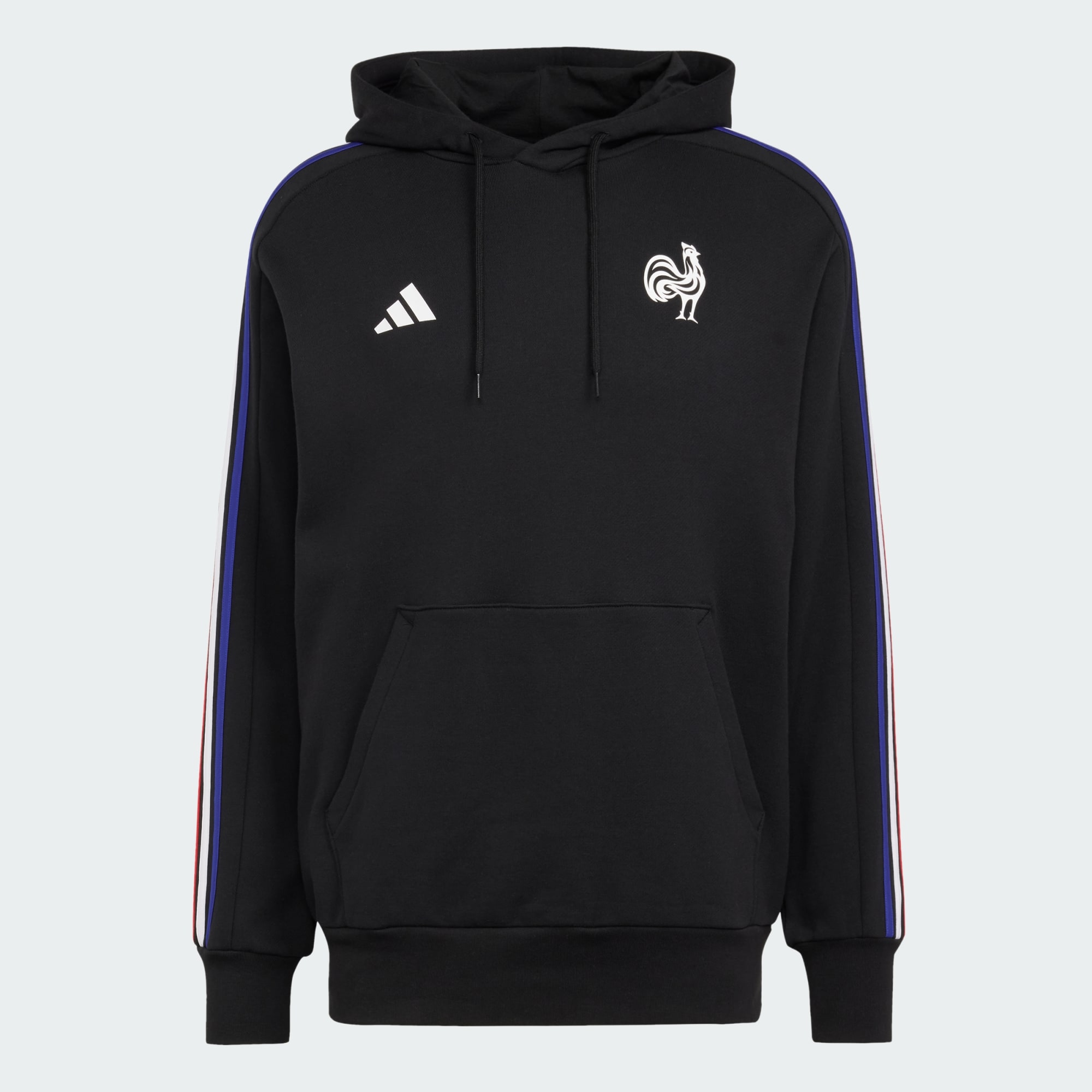 Show your rugby union colours. With tricolour-style 3-Stripes on its long sleeves and a team badge on the chest, this adidas France hoodie leaves no doubts about who you back on the pitch. Soft French terry fabric and ribbed details mean it's perfect for pulling on over your team jersey on crisp match day mornings.