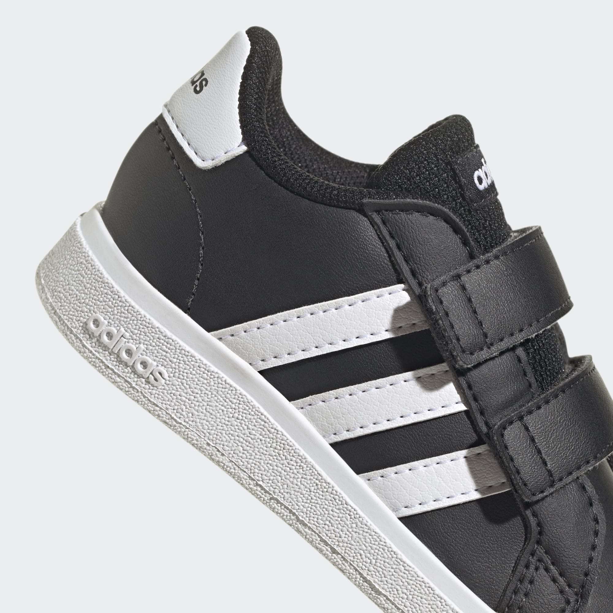 These infants' adidas shoes go with everything from dungarees to whatever is in the dressing-up box. The sturdy cupsole and snug hook-and-loop straps combine to keep little feet supported, so they move easily from play date to sensory class to snack time. And that's just their morning plans. Made with a series of recycled materials, this upper features at least 50% recycled content.