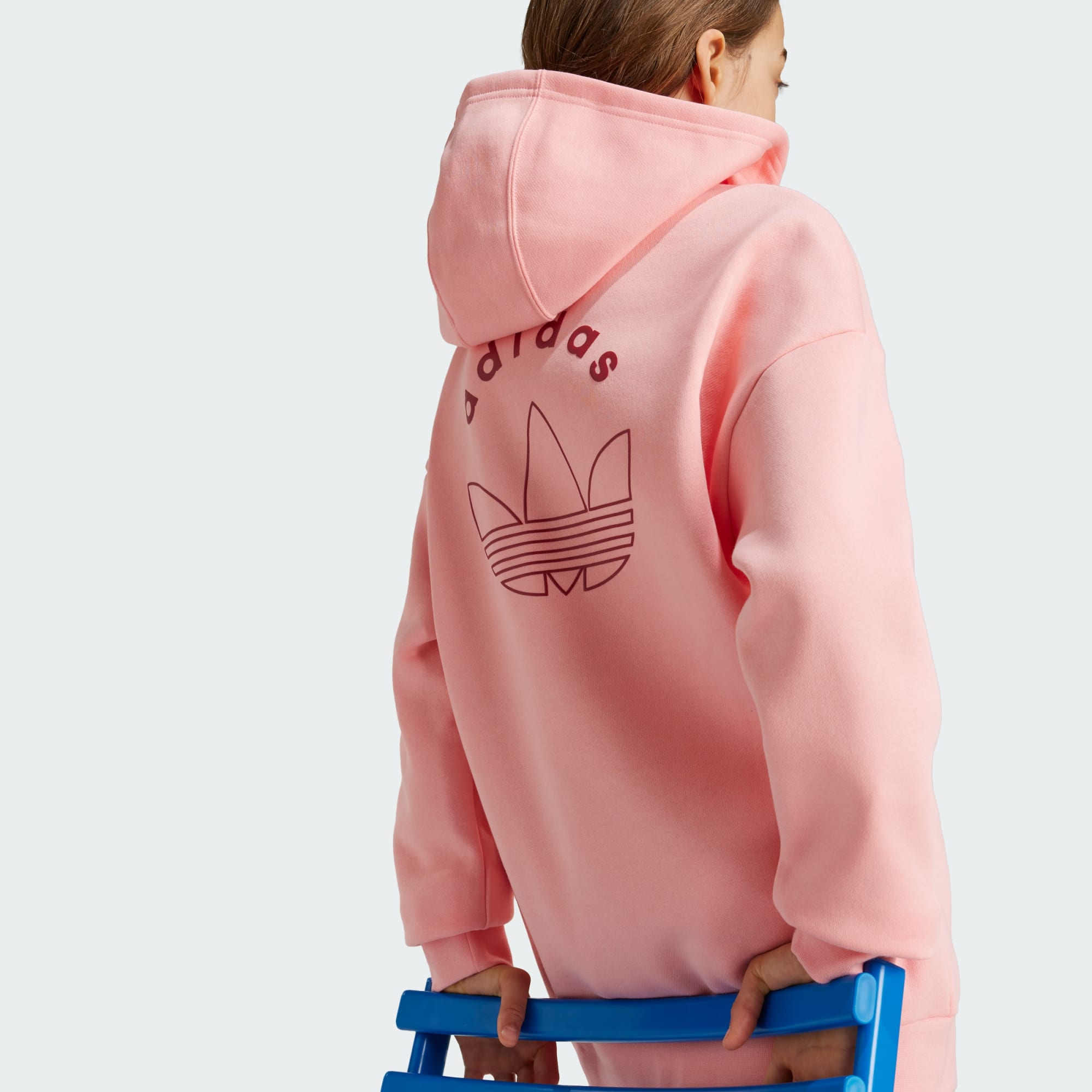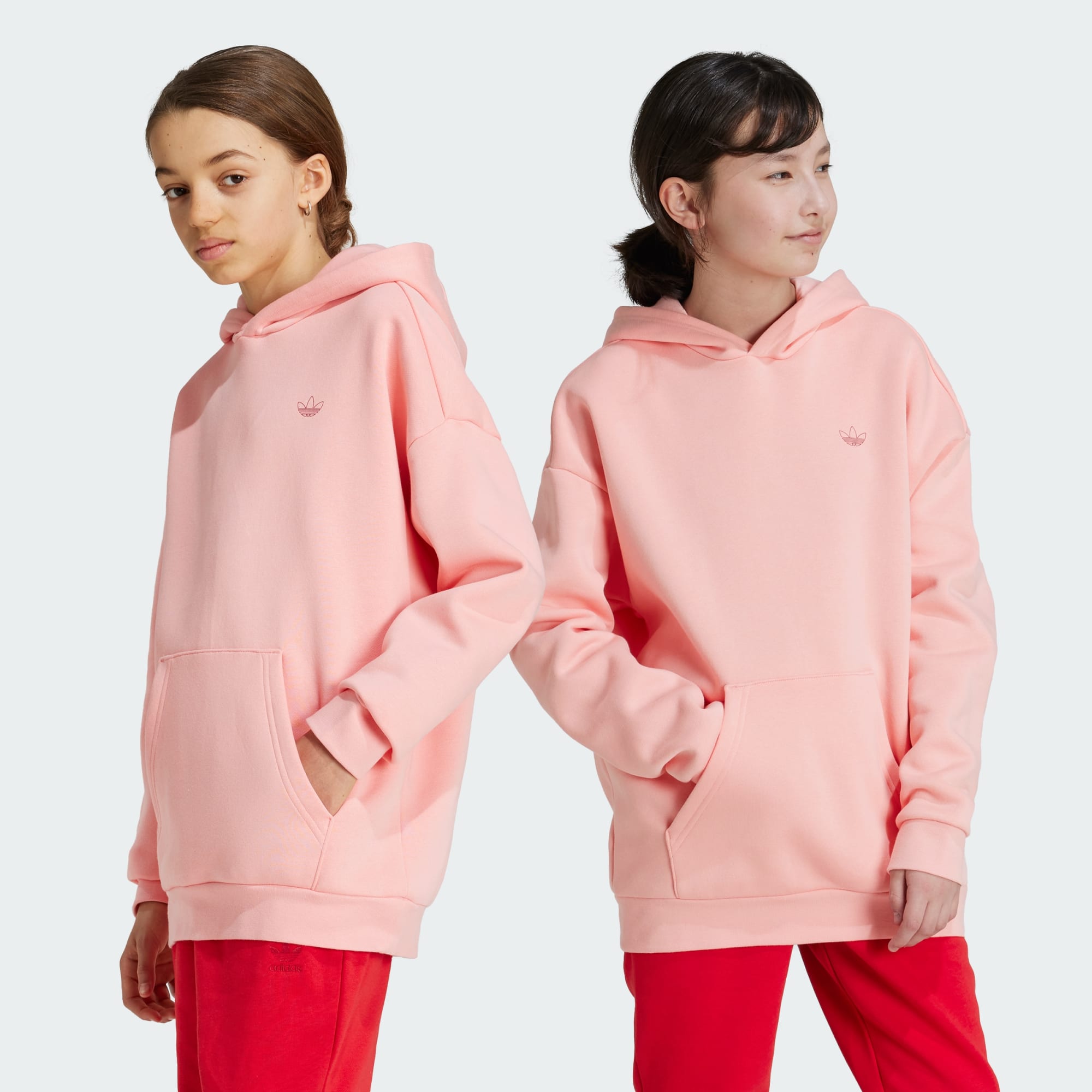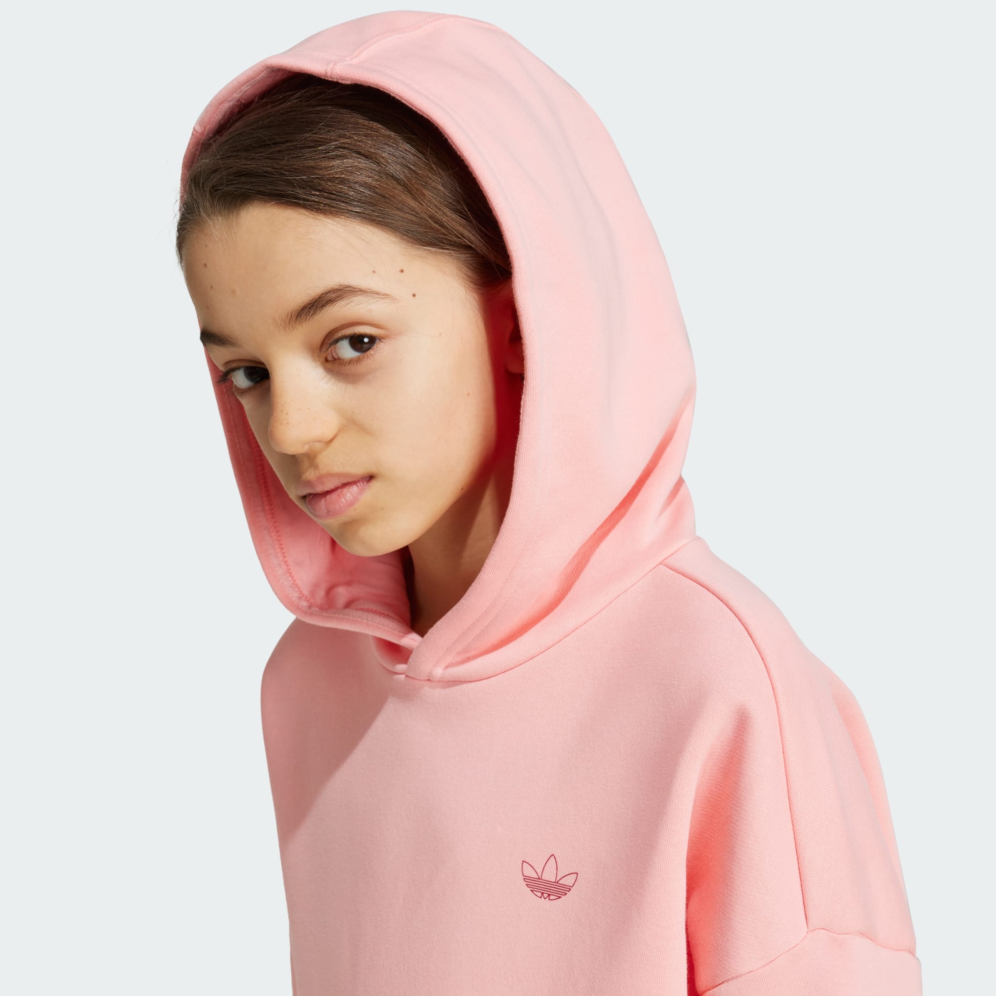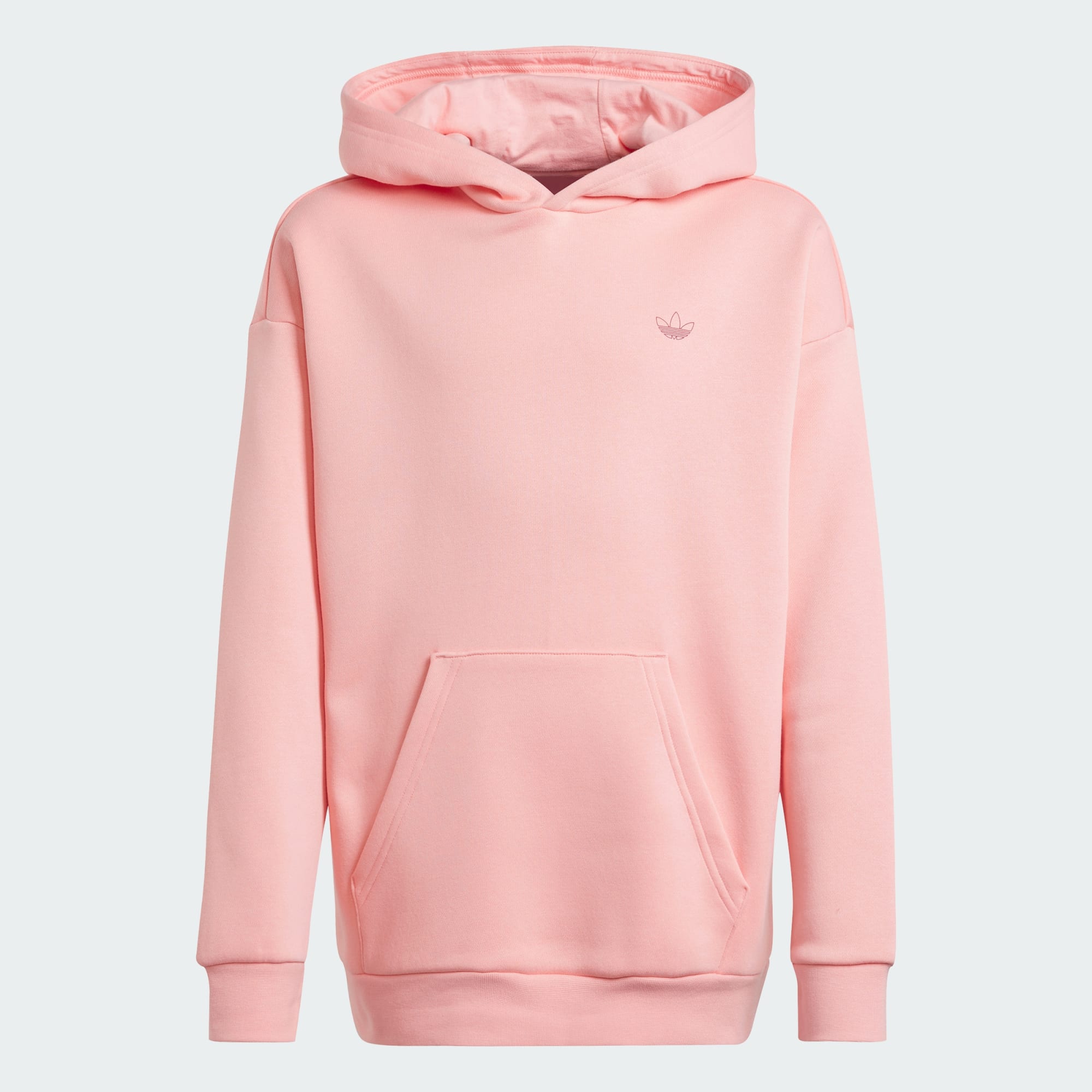This juniors' adidas hoodie pairs sport-inspired style with classic comfort. The soft fleece build and ribbed cuffs keep you warm while the loose fit and oversized hood provide easygoing, casual style. A subtle Trefoil on the chest signs off on the look.