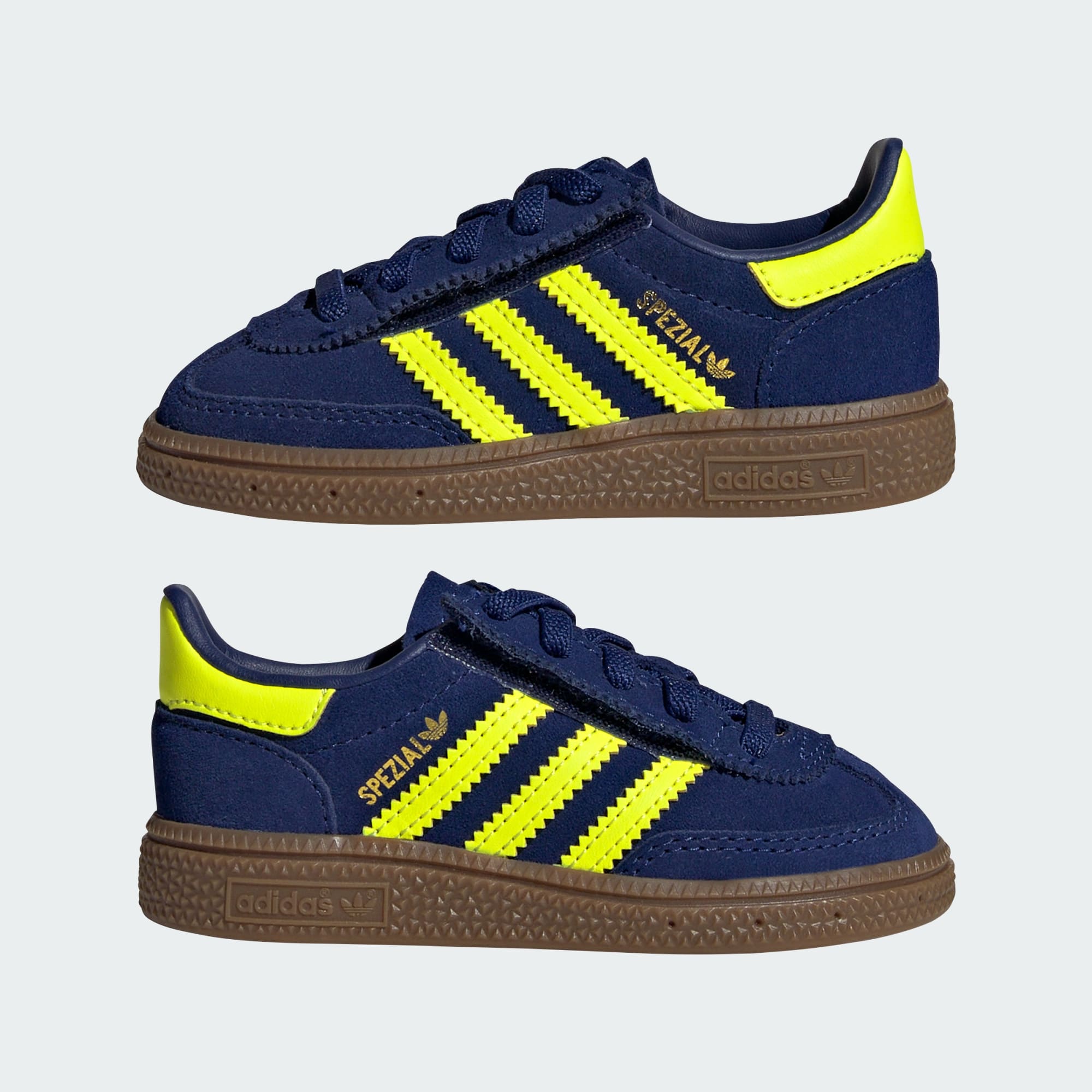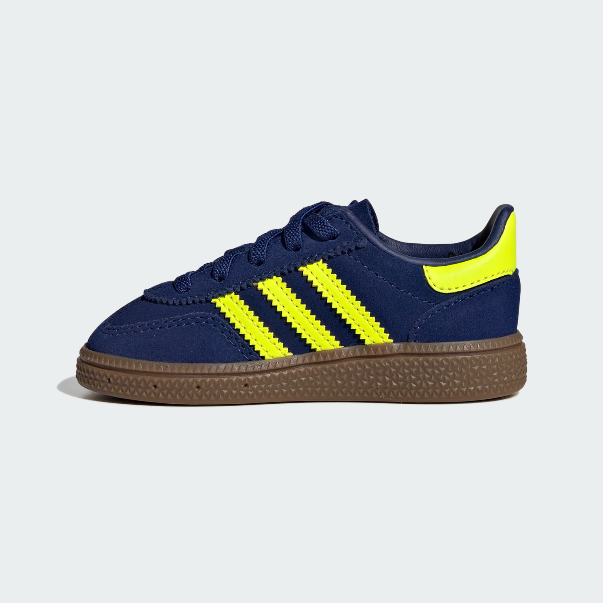 Bring the heritage style of adidas Originals to the littlest creators with these adidas Handball Spezial Shoes for babies. Super bendy for tiny feet, they have a soft, supple suede upper that's comfy and holds up to daily wear. Elastic laces let the collar stretch open, giving you an assist when slipping them on and off. Tap into the authentic vibe of vintage adidas, and give your baby a reason to smile.