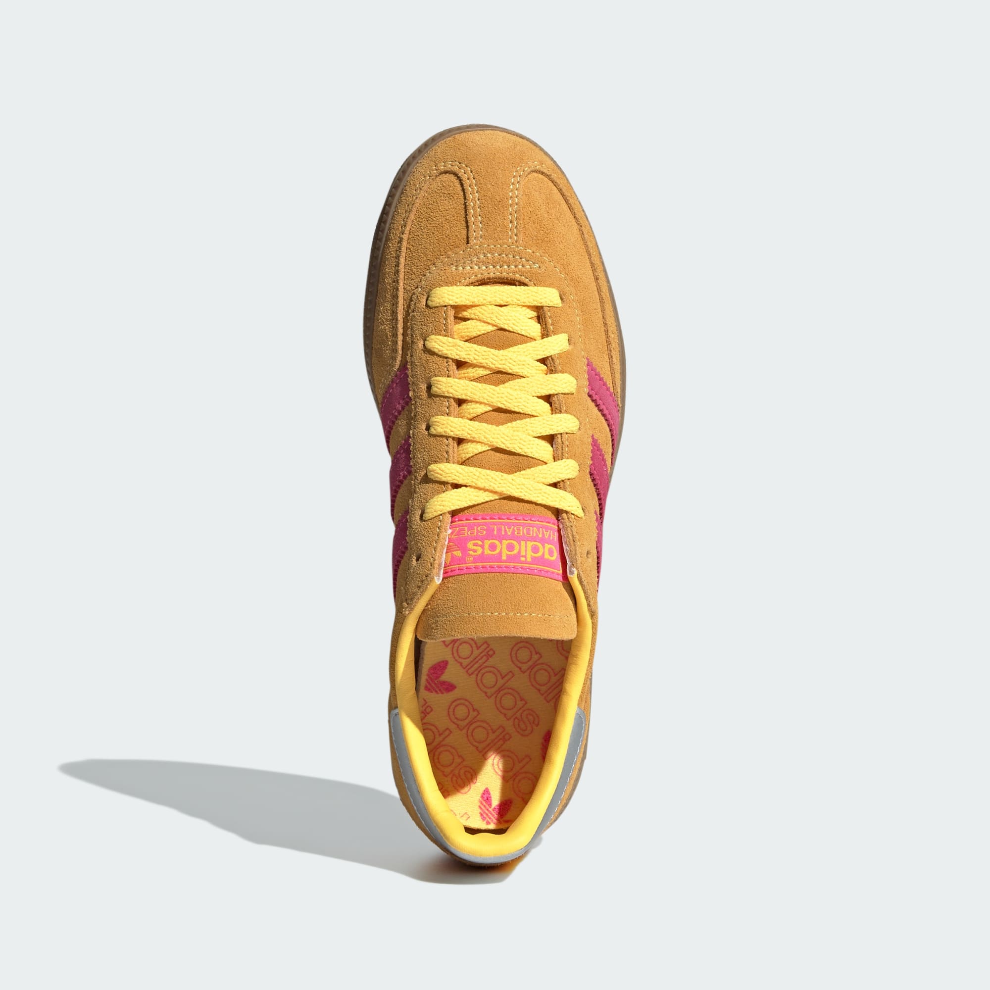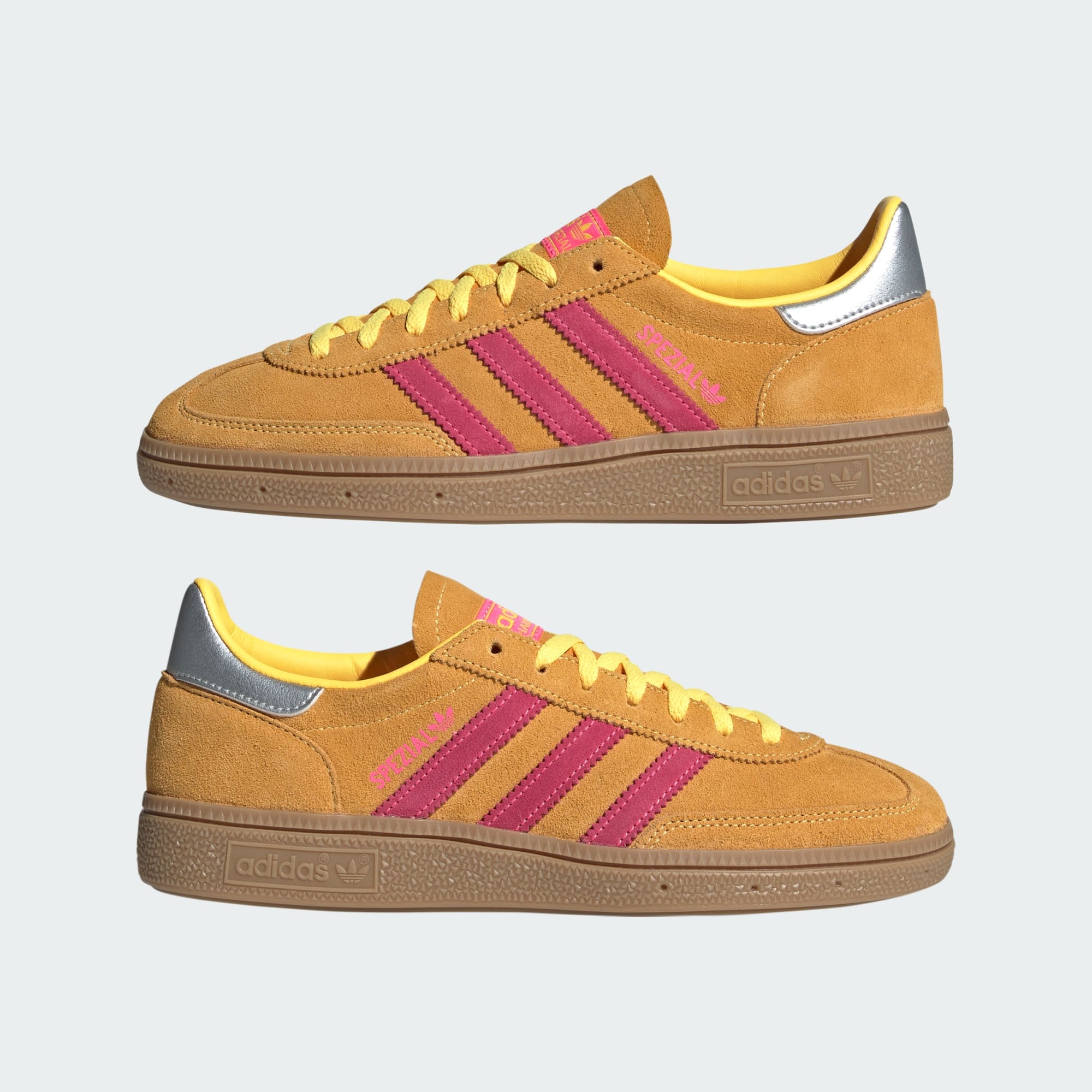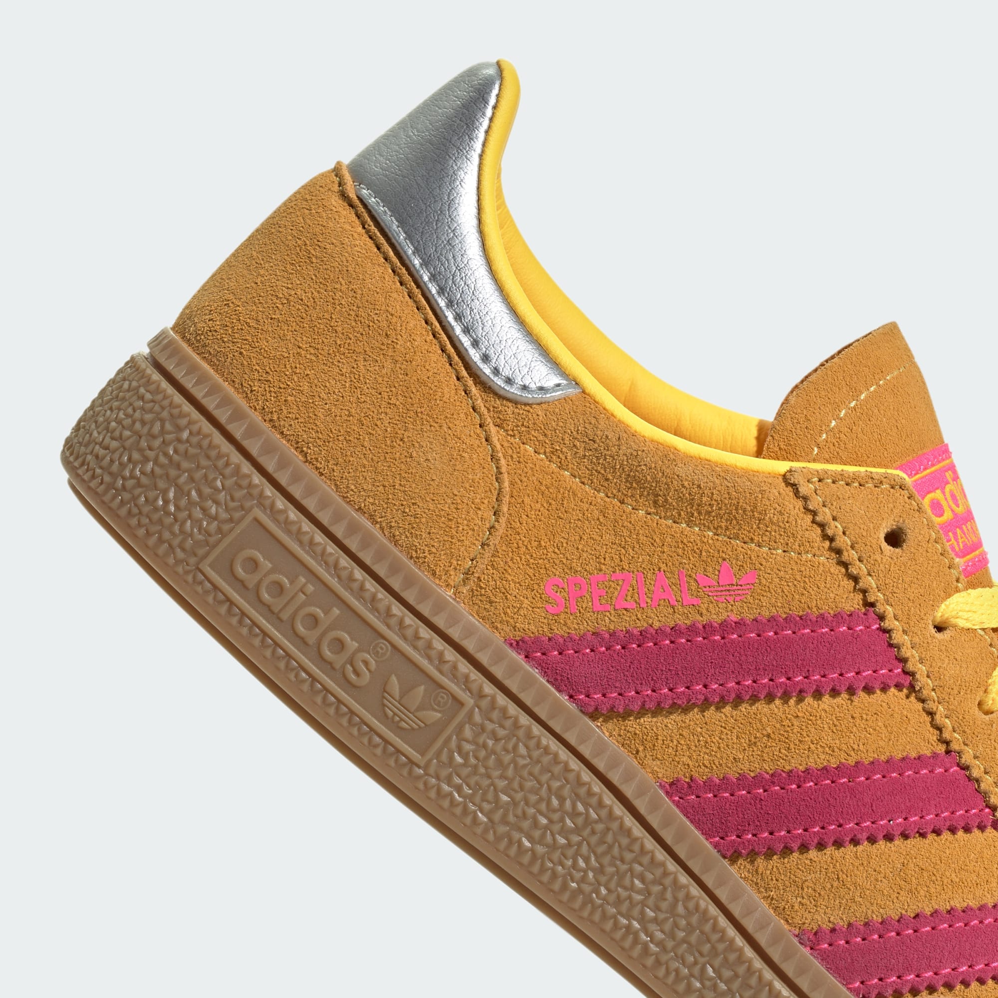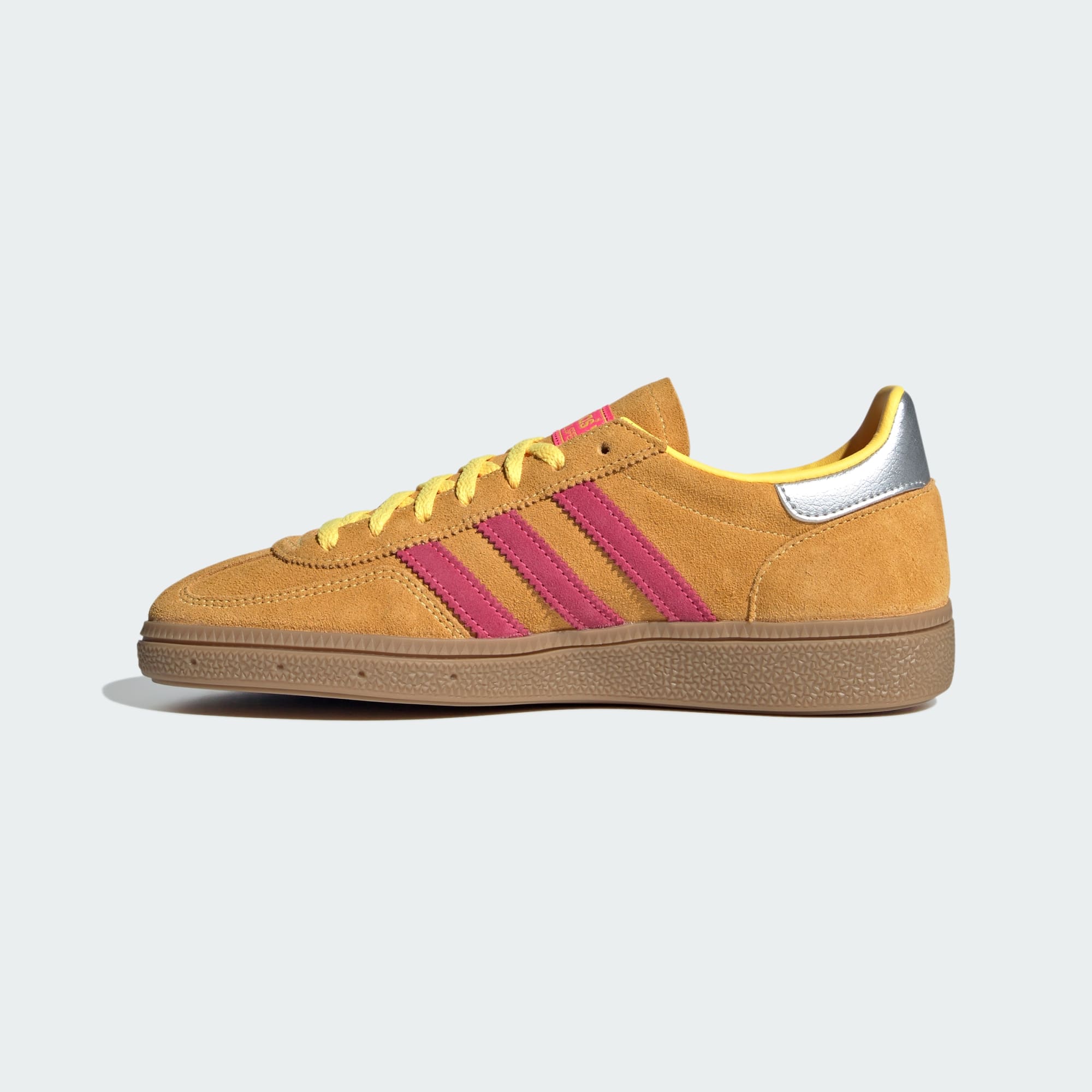 These adidas Handball Spezial shoes revive a '70s design for everyday wear. The pink and yellow suede upper creates a lively look that radiates positivity and joy. Subtle silver accents elevate the design while the rubber outsole provides a solid footing wherever your day takes you.
