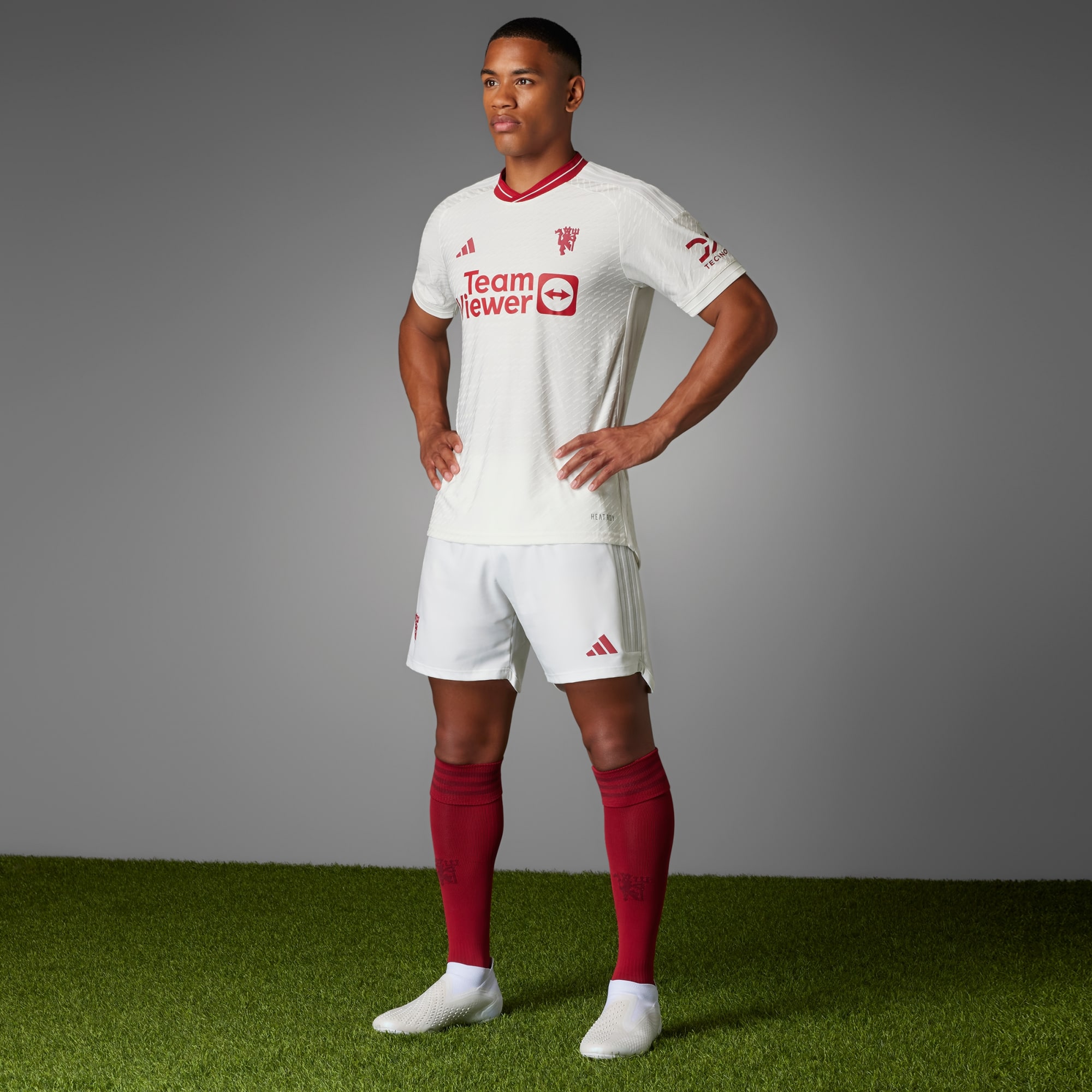 Celebrating half-a-century of the iconic red devil. Clean and classic, the Manchester United 23/24 Third Authentic Jersey lets one of football's most recognisable symbols shine with an eye-catching heat-applied finish. Whether you're celebrating the club or are simply a fan of the beautiful game, this slim-fitting shirt combines mesh panels with HEAT.RDY technology that maximises airflow so that you can feel cool on the pitch.