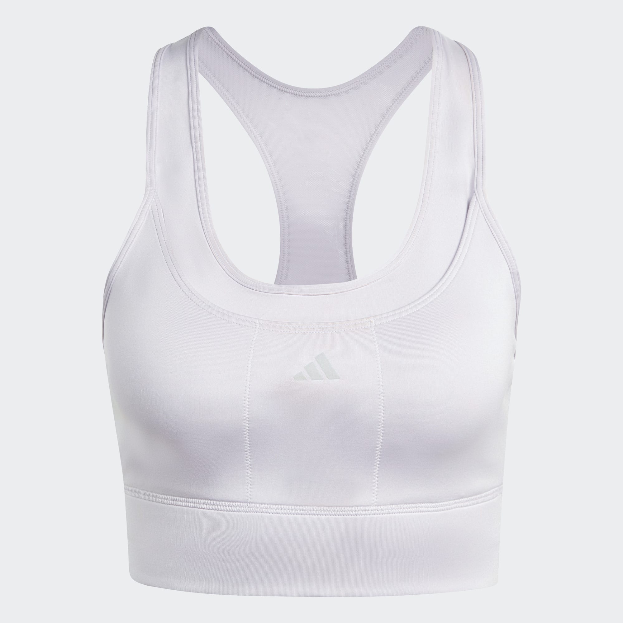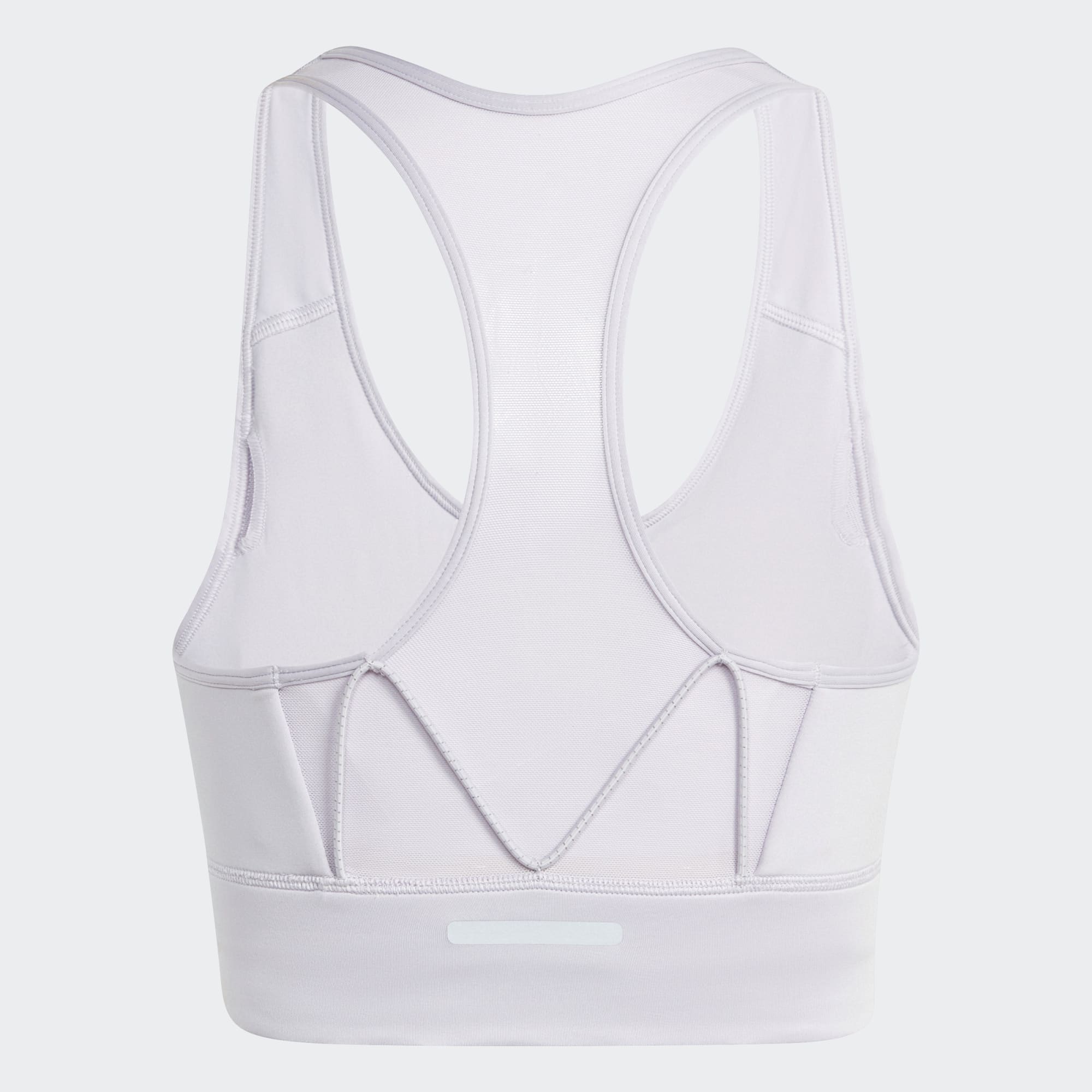 From the starting line to the finish line. Hit the road, trail or track in total comfort when you're wearing this adidas running bra. Lightweight and breathable, it gives you coverage and support, so you can run without distractions. Stash your essentials like keys or cards in the hidden pockets. When you heat up, attach your extra layers to the reflective bungee in the back. AEROREADY manages moisture to keep you ready for action. It doubles as a top, so you can head out in total confidence.