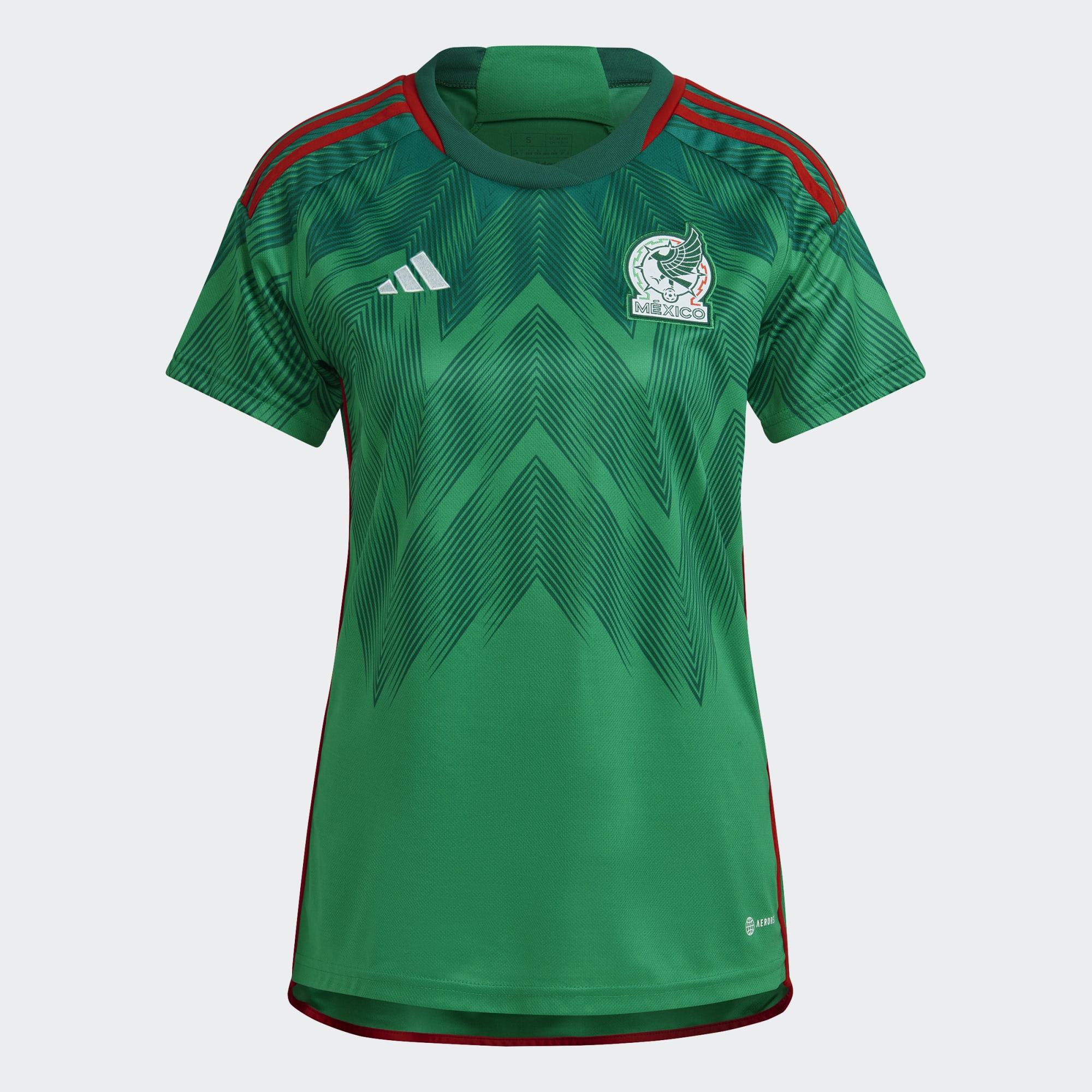A moisture-wicking Mexico home jersey made with recycled materials.