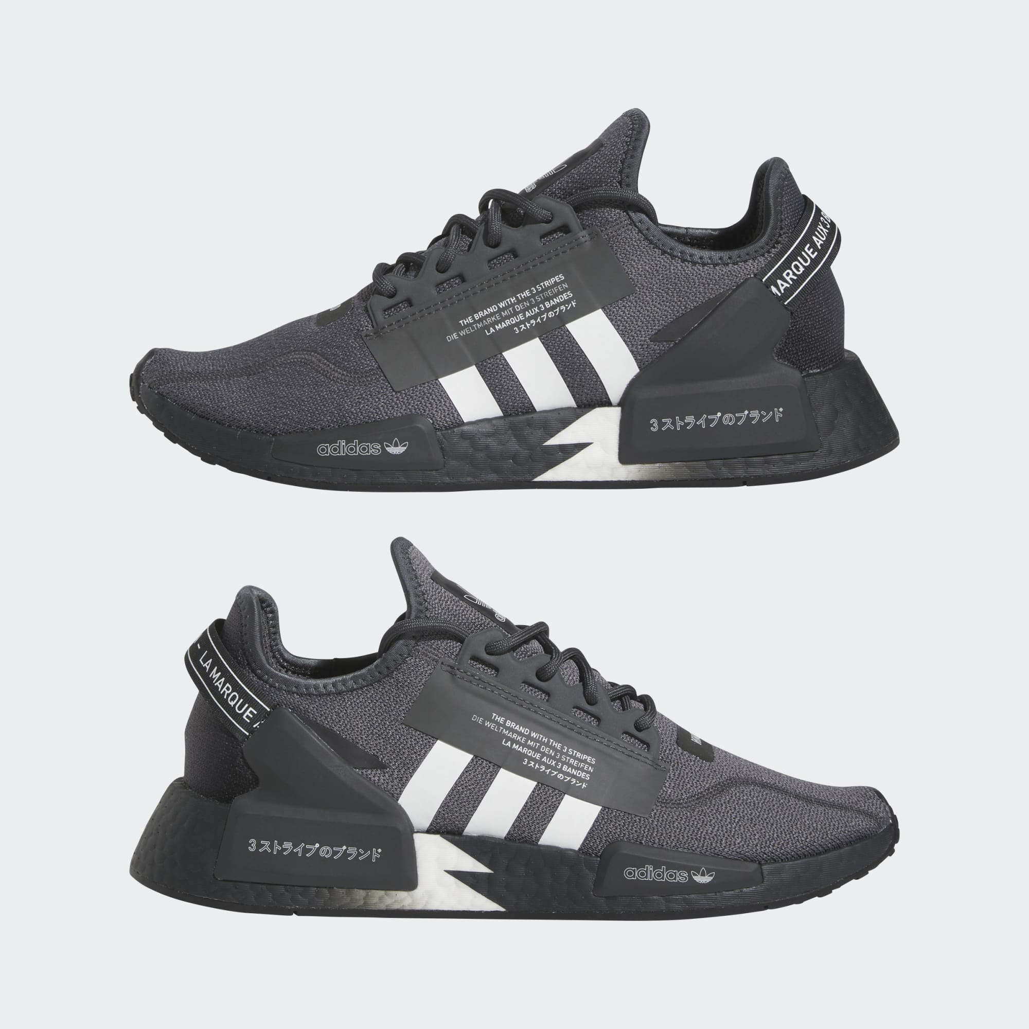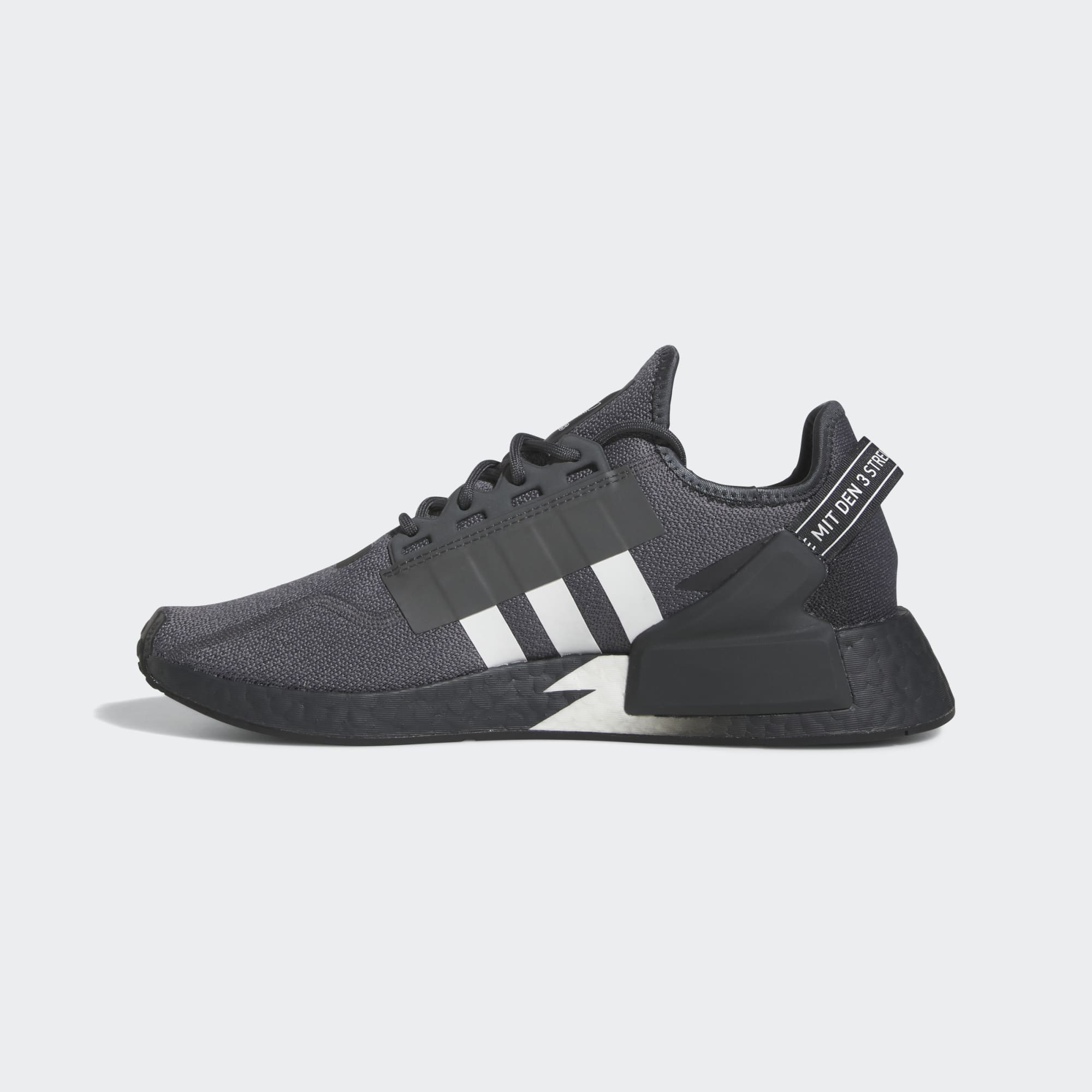 Meet your new favourite go-tos. These adidas NMD_R1 V2 Shoes are effortlessly cool and super versatile. The breathable fabric upper features the iconic 3-Stripes with text overlays for a cyberpunk look. Style them with some joggers for an easy outfit you can wear anywhere. Know that each step will be comfortable thanks to the BOOST midsole. Made with a series of recycled materials, this upper features at least 50% recycled content. This product represents just one of our solutions to help end plastic waste.