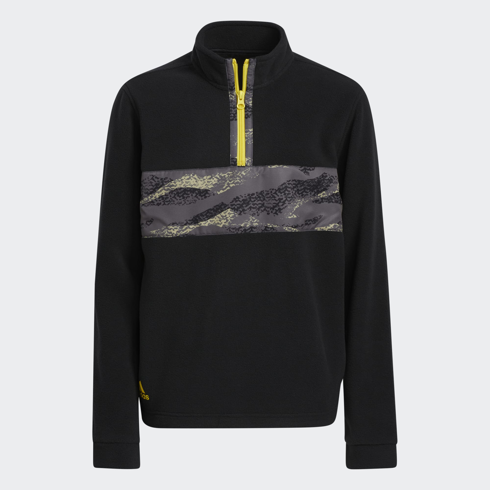 Stay warm from tee off until the last hole. This juniors' adidas golf pullover is made of soft fleece to keep you cosy when the temperature drops. Zip it up all the way, and the mock neck provides extra coverage to ensure you're going strong from one hole to the next. Made with recycled content generated from production waste, e.g. cutting scraps, and post-consumer household waste to avoid the larger environmental impact of producing virgin content.