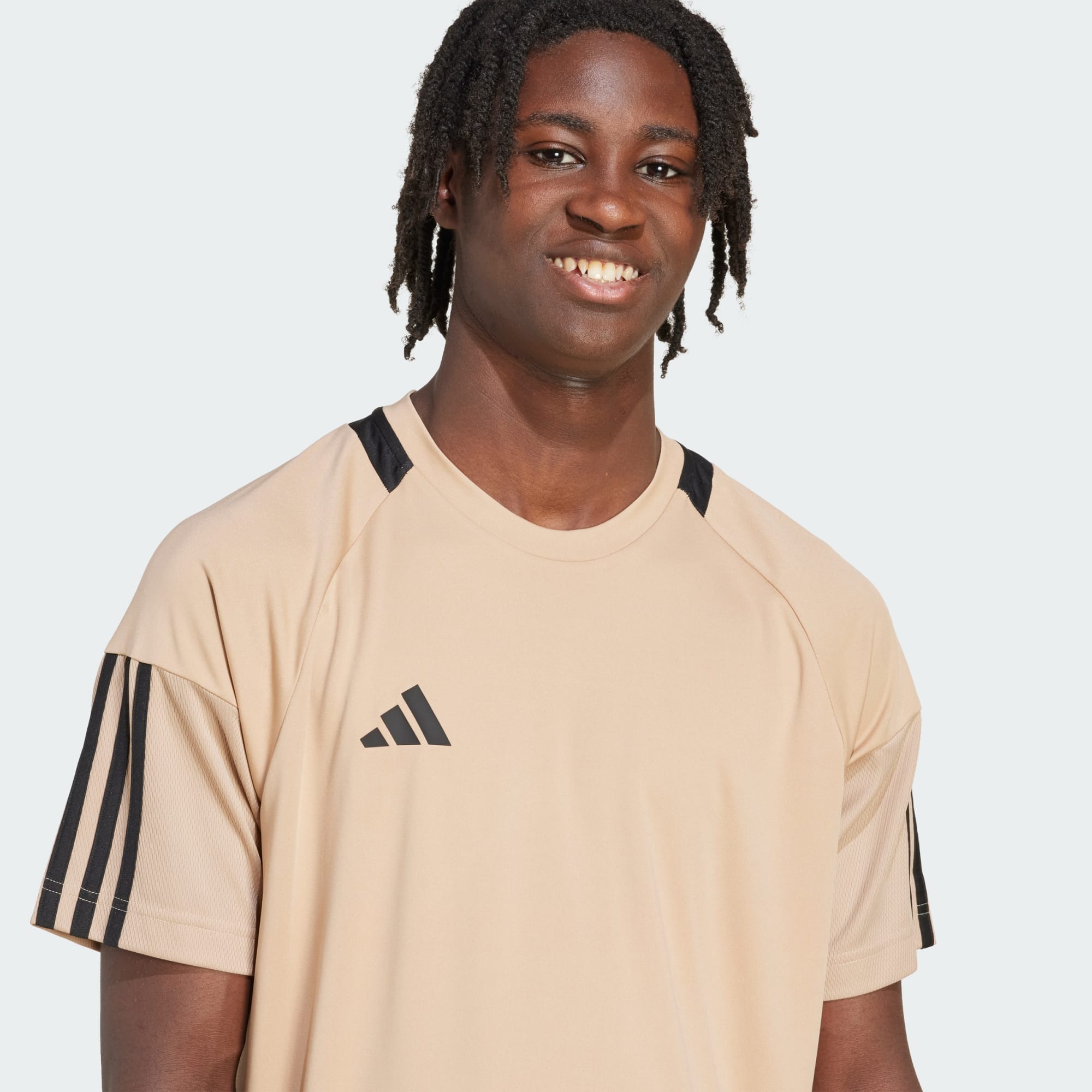 A sporty AEROREADY tee with fresh 3-Stripes and 3 Bar Logo branding.