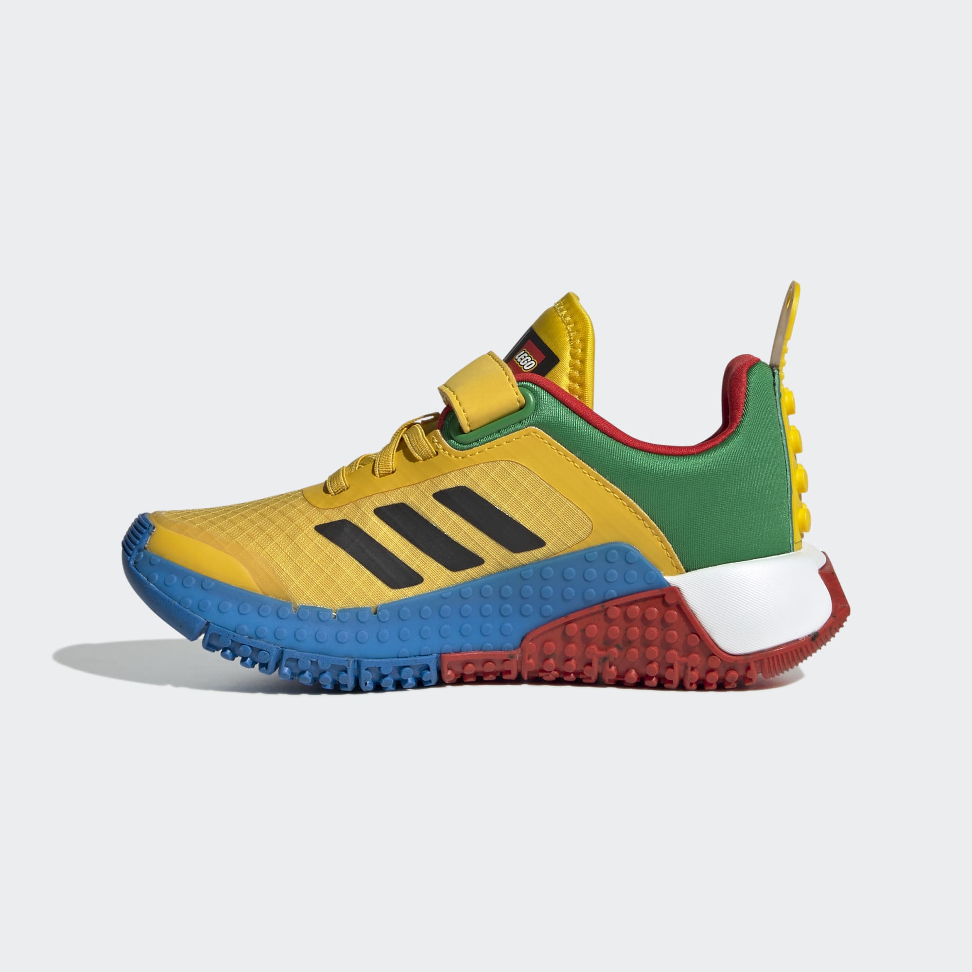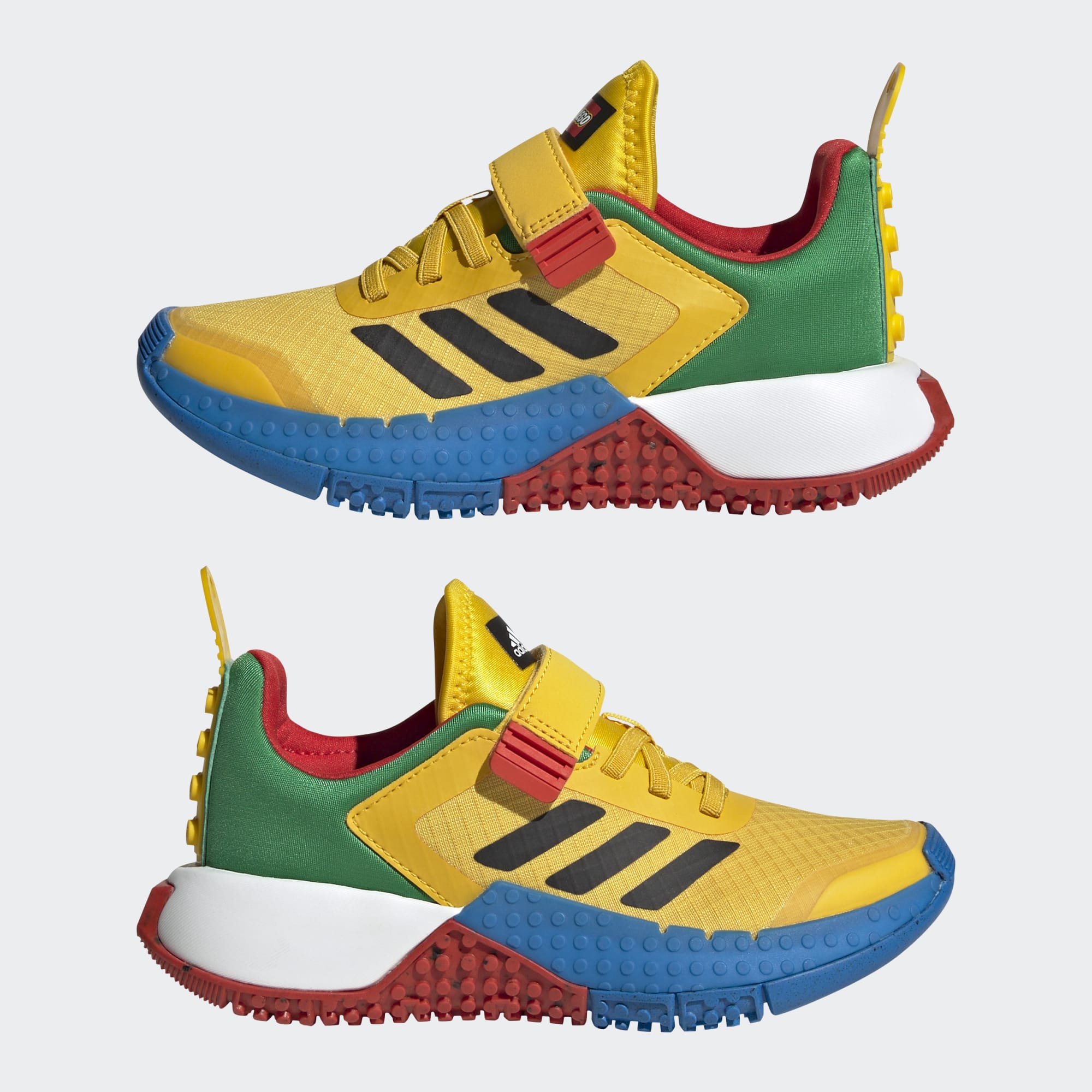 The power of play is right at kids' fingertips — or their toes. With signature LEGO® brick-inspired tooling and distinctive LEGO colouring, these kids' adidas shoes are a showstopper in any situation. A mesh upperwith a hook-and-loop strap offers breathable comfort and a secure fit as they jump and run around. The rubber outsole ensures dependable traction through it all. Made with a series of recycled materials, this upper features at least 50% recycled content.