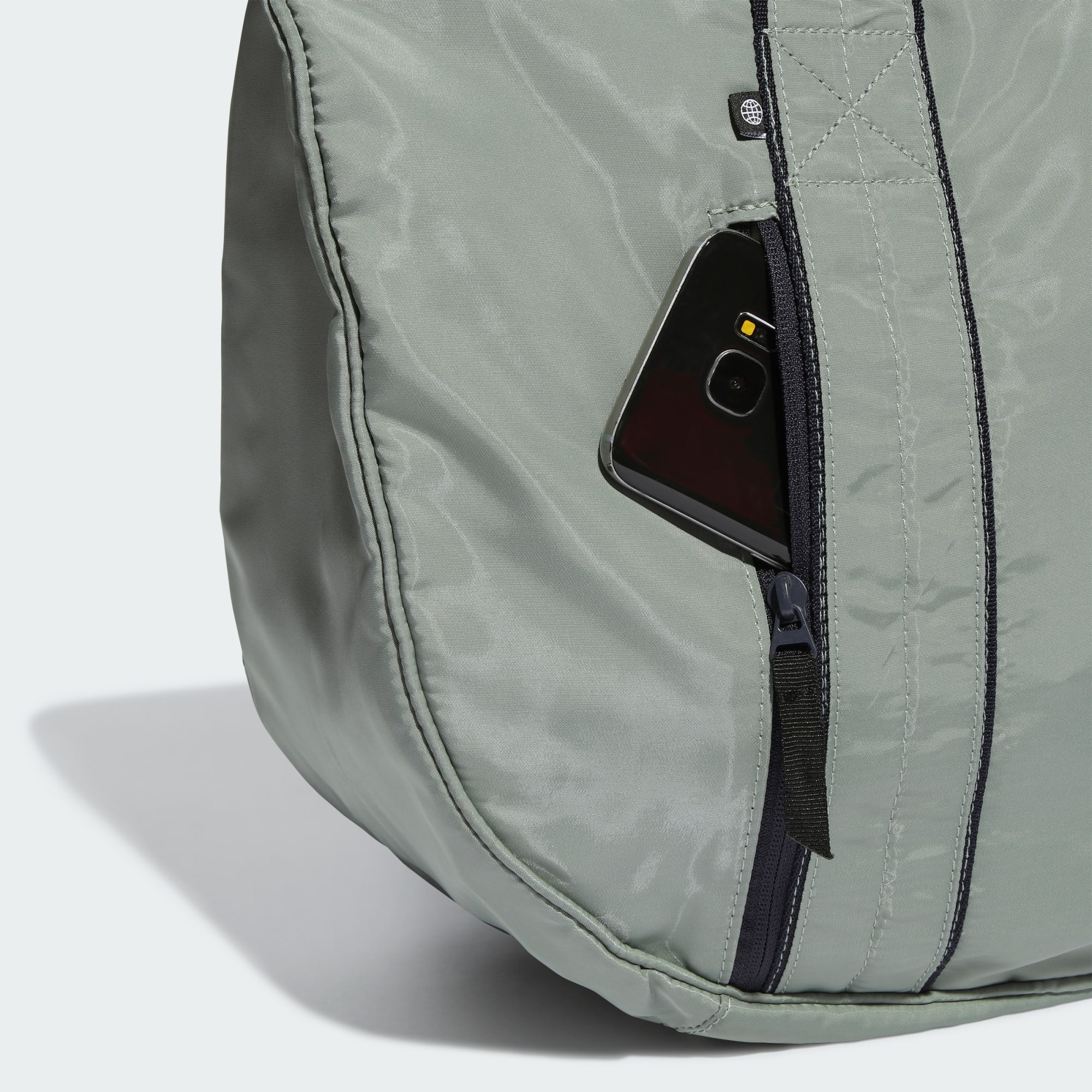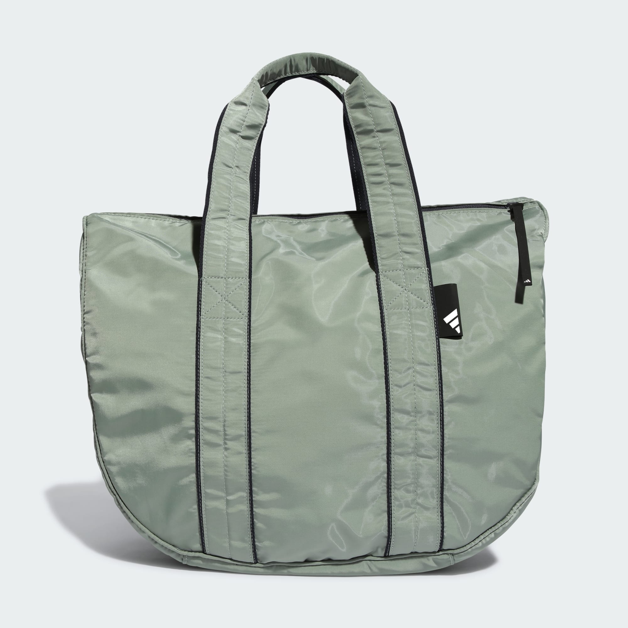 A shiny outer, padded carry handles and a long zipper pull give this adidas part tote, part shoulder bag a luxe look. Fill it with your bodysuit and warm-up socks or yoga gear and mat, and get to the studio. Don't worry if you need to pick up a few things on your way home. You still have room. Made with a series of recycled materials, and at least 40% recycled content, this product represents just one of our solutions to help end plastic waste.