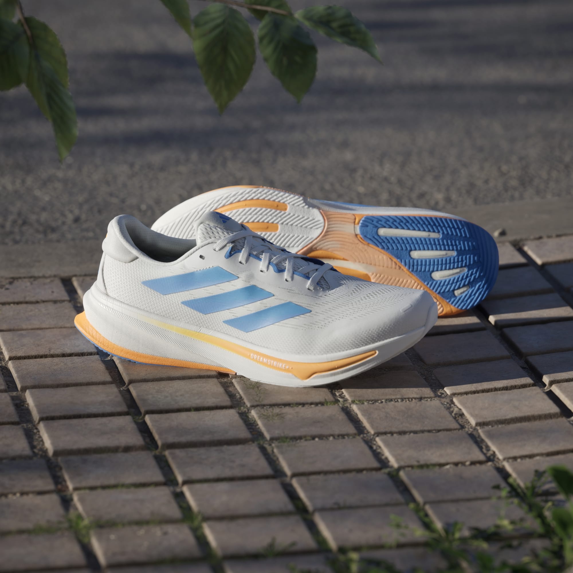 You got into running, and now there's a race on your calendar. Keep making progress in these adidas running shoes for daily runs. They ride on a Dreamstrike+ midsole, our lightweight super foam tuned for comfort. Support Rods help guide you from heel strike to toe off. Our new refined engineered sandwich mesh upper and premium heel construction is elegantly designed for optimized breathability for our most comfortable fit yet. Recognized by the American Podiatric Medical Association for promoting good foot health; this is Supernova Rise 2.