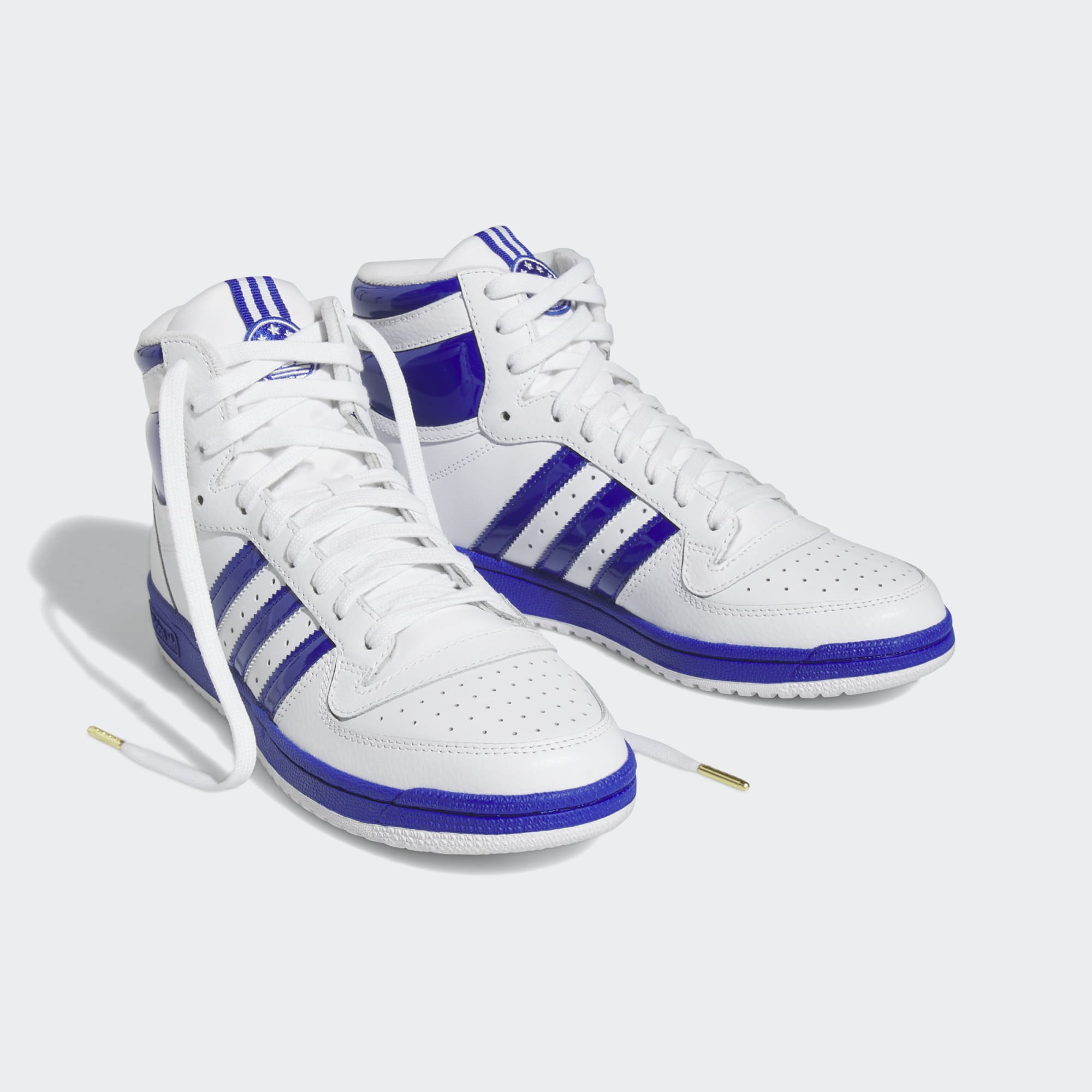 Add some OG style to your wardrobe rotation. From the hardwood to the concrete to everyday wear, these adidas Top Ten RB Shoes don't miss a beat. They feature a leather upper with contrasting 3-Stripes, midsole and ankle panels. Small metallic-gold details throughout add a touch of shine for a luxe finish. Sport them with your favourite track suit for a relaxed vibe.