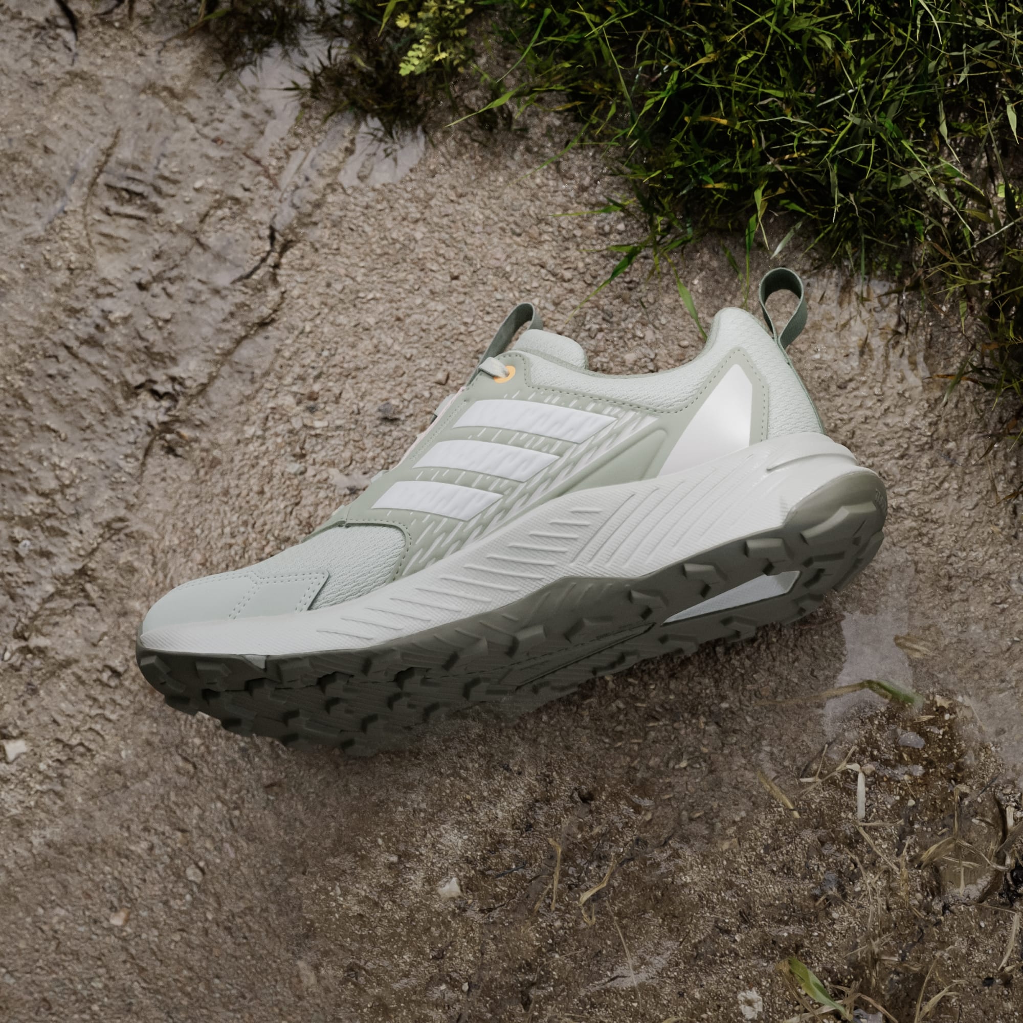 Ready, set and explore. Whether you prefer to run or walk, these adidas Terrex trail running shoes support your effort with a balance of cushioned comfort and breathability. The reinforced upper offers off-road durability and support to extend your range to the trails. A grippy Traxion rubber outsole with a lugged tread maintains a sure-footed feel in all terrain.