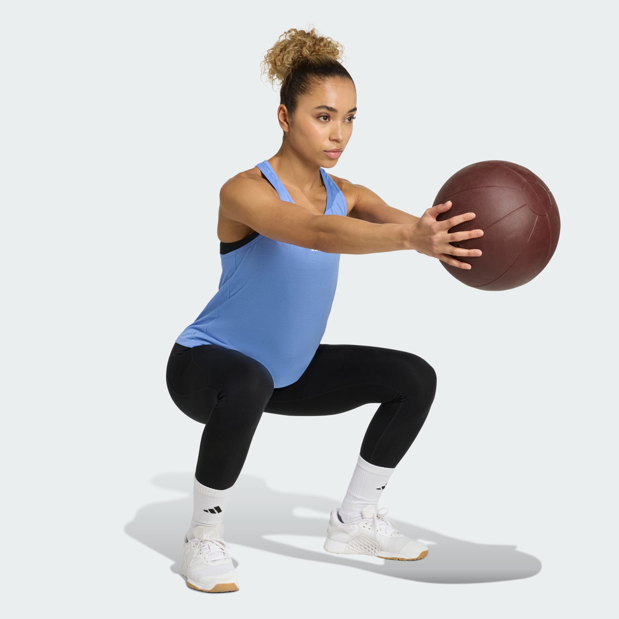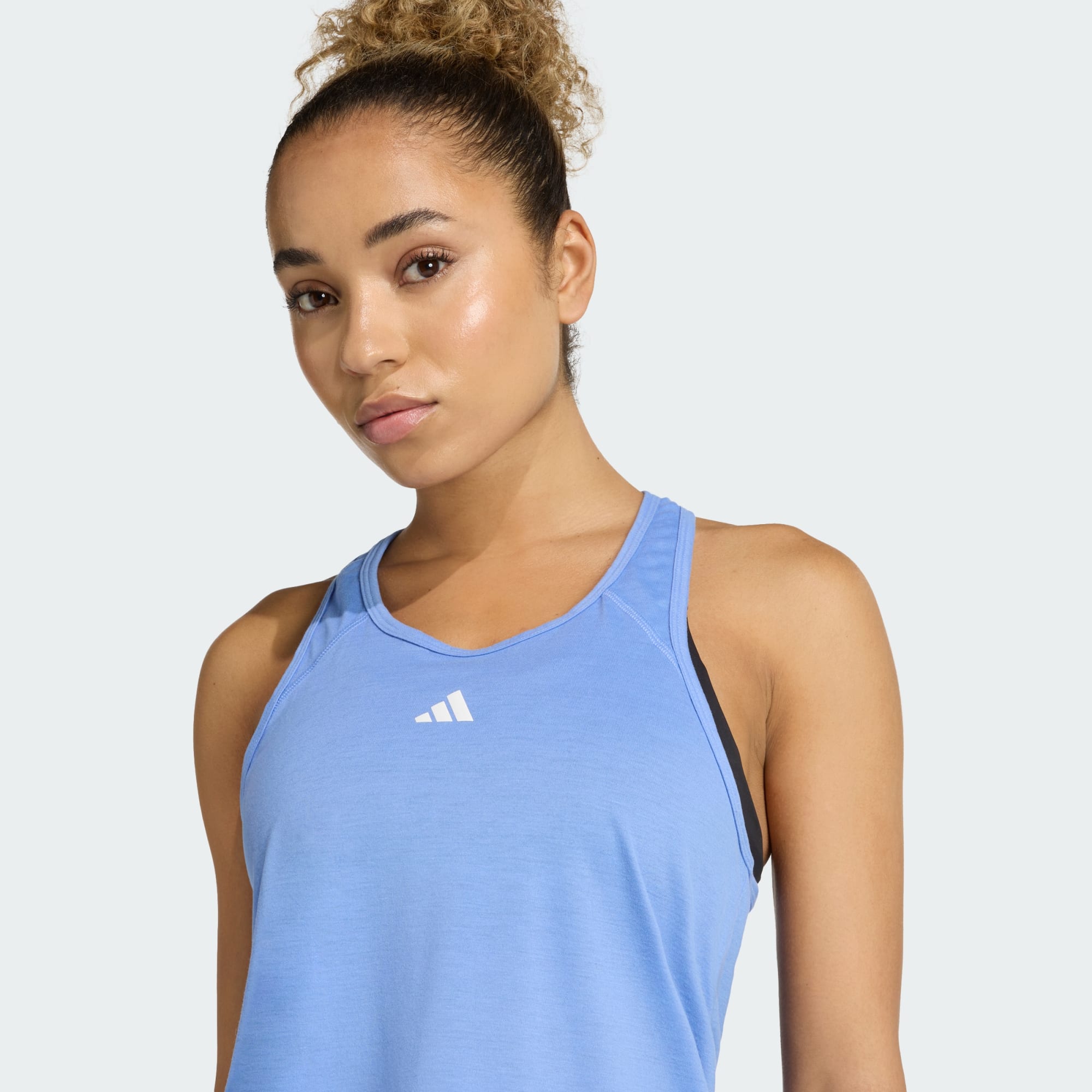 No matter how intense your workout, stay focused on your goals in this adidas racerback tank. AEROREADY technology keeps you feeling dry and confident during your training session while subtle seam placement and a streamlined cut allow free range of motion. This product is made with at least 70% recycled materials. By reusing materials that have already been created, we help to reduce waste and our reliance on finite resources and reduce the footprint of the products we make.