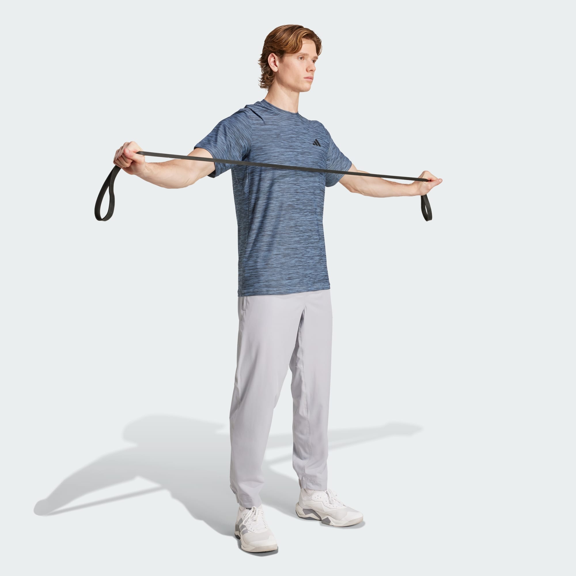 Lift, twist and stretch. Whatever the workout, this adidas training t-shirt gives you total freedom to move. The breathable fabric has plenty of flex, and it's cut for stay-put coverage through overhead movement. AEROREADY keeps you dry every step of the way. Made with a series of recycled materials, and at least 70% recycled content, this product represents just one of our solutions to help end plastic waste.