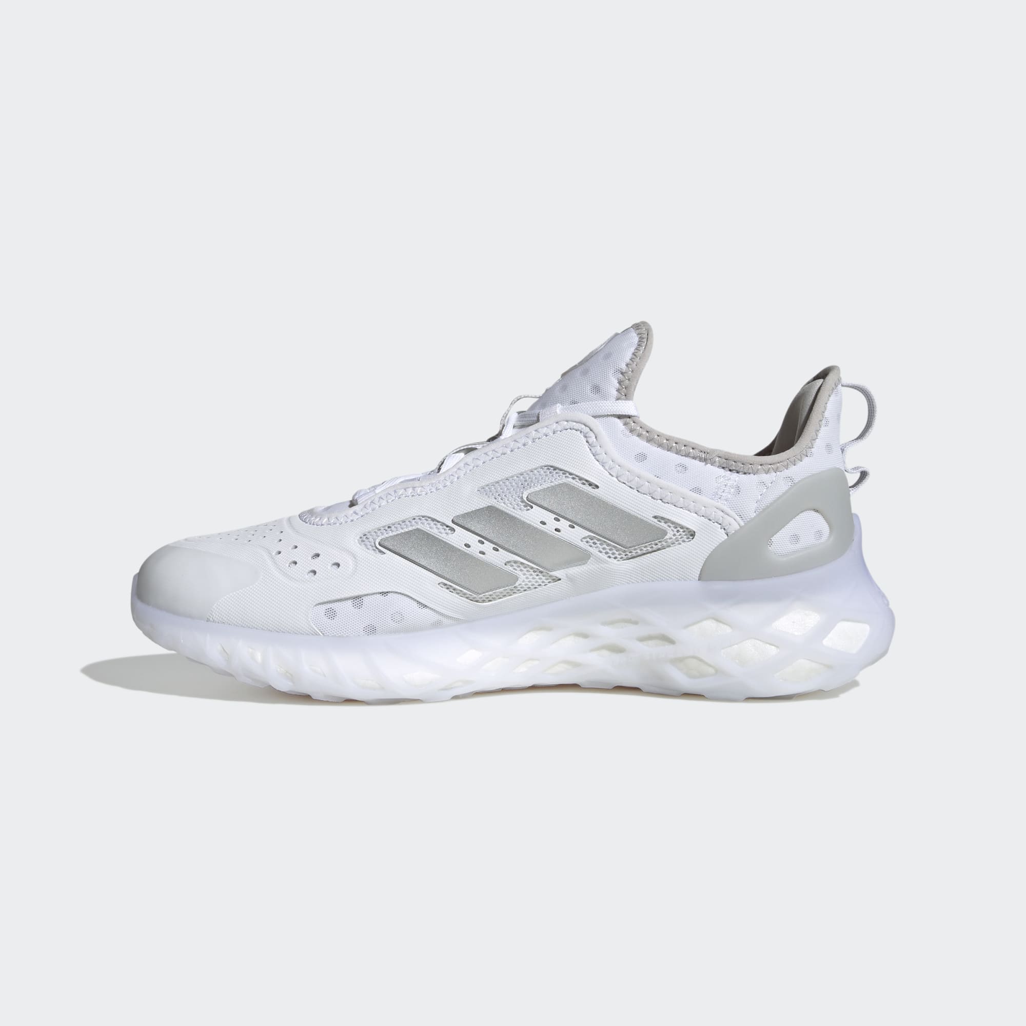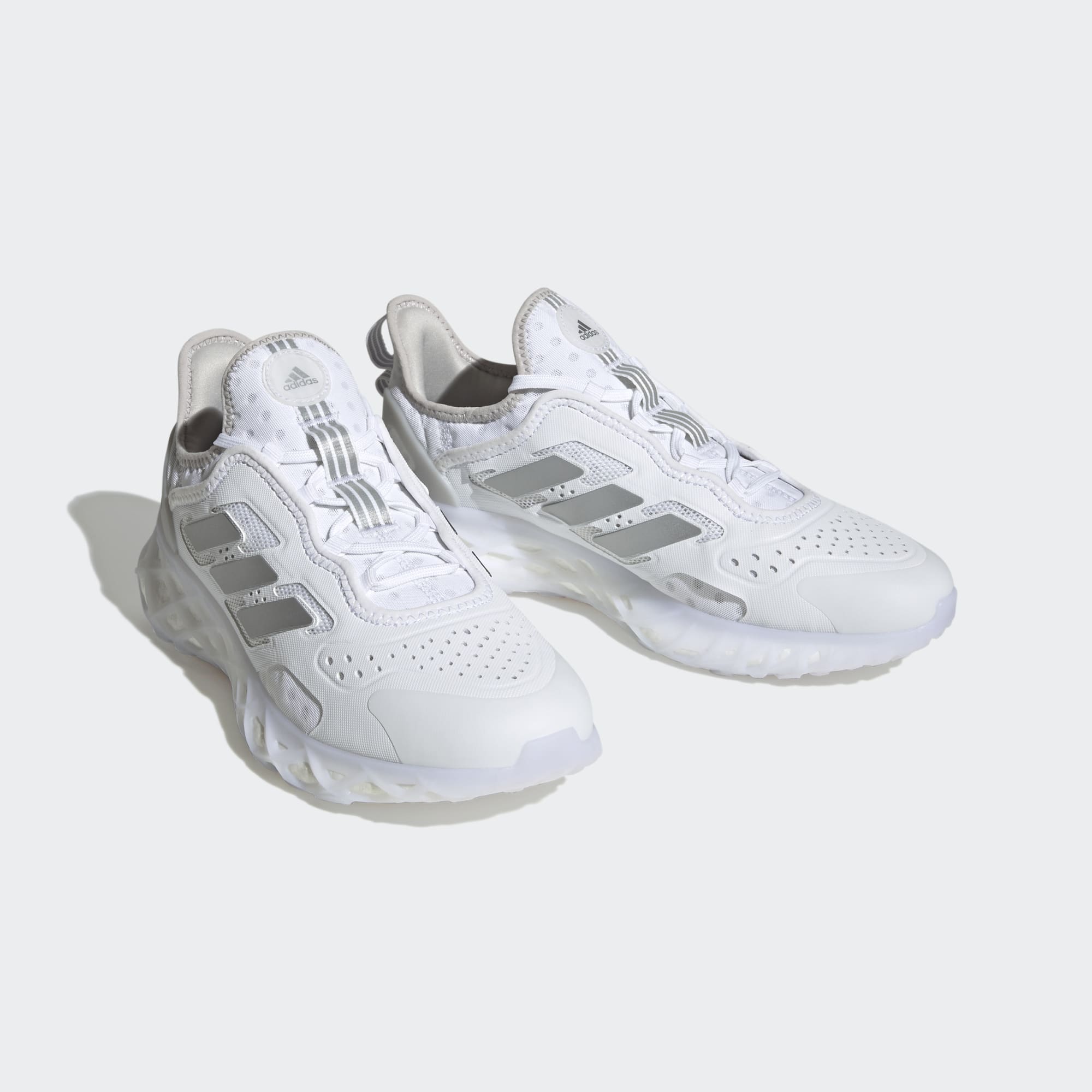 Stay ready for anything the day brings. These shoes have a responsive adidas BOOST midsole caged inside a Stretchweb outsole that flexes naturally as you move. Vibrant contrast details on the upper and a reflective tongue suit them well for a night run or a get-together with friends. Made with a series of recycled materials, and at least 50% recycled content, this product represents just one of our solutions to help end plastic waste.