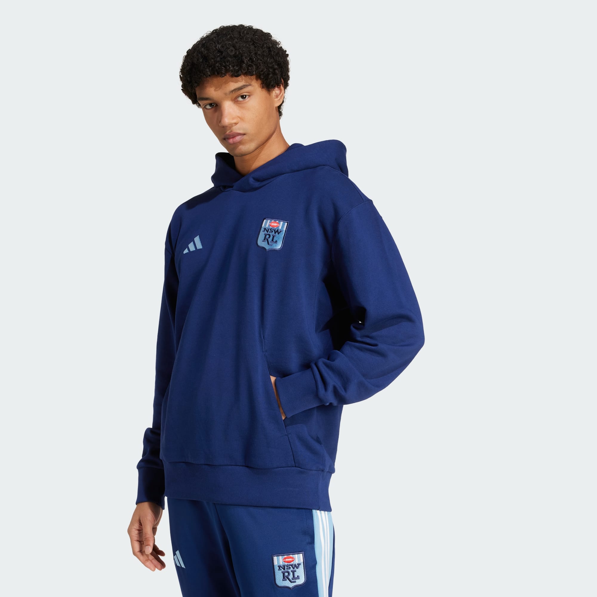 Show your Blues pride in this New South Wales hoodie from adidas. Crafted from soft French terry and offering a baggy fit, it's the perfect layer for match days and more. Sitting on the chest, a team crest displays what your favourite rugby league team means to you.